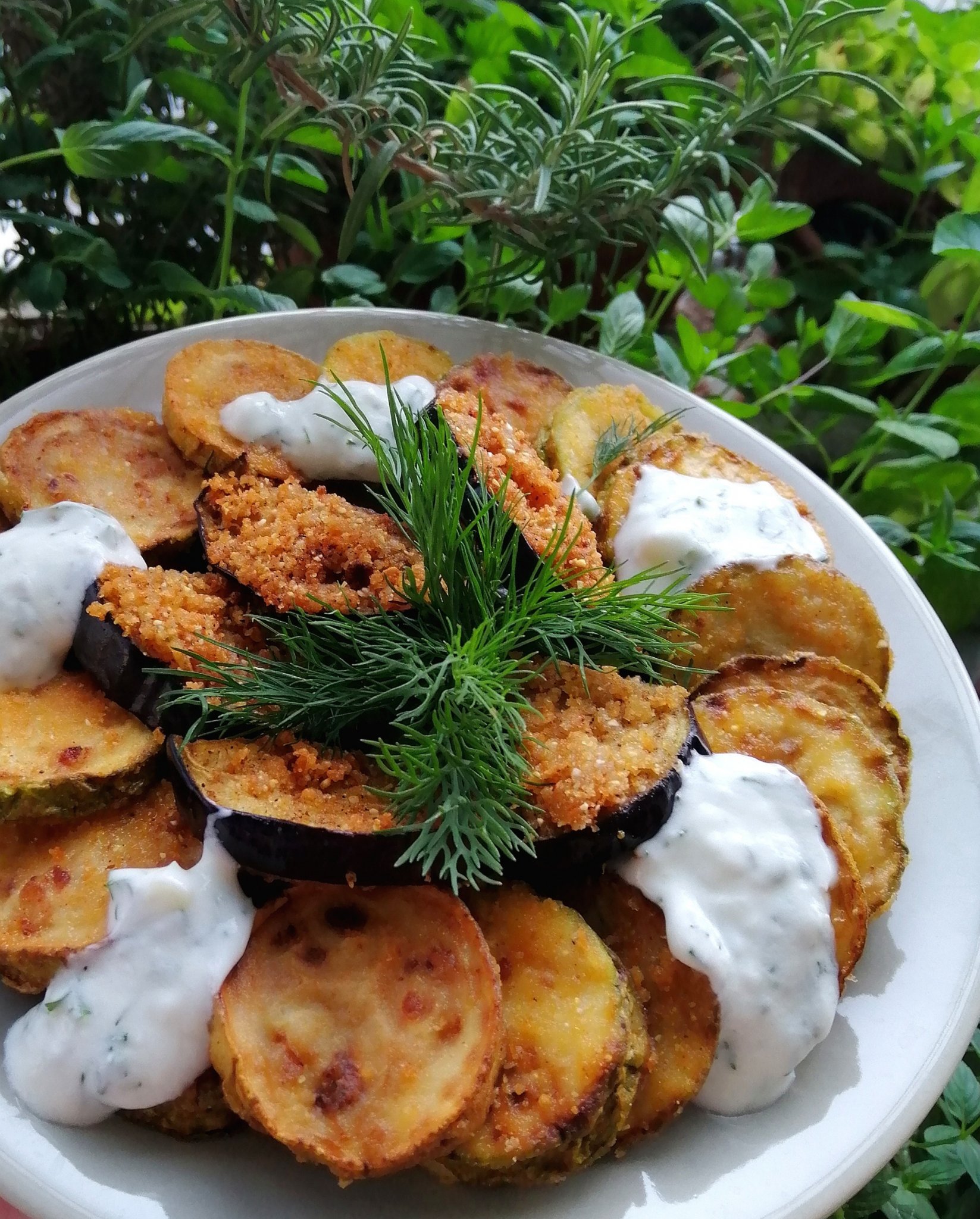 Тиквички и патладжани в суха пармезанова панировка: