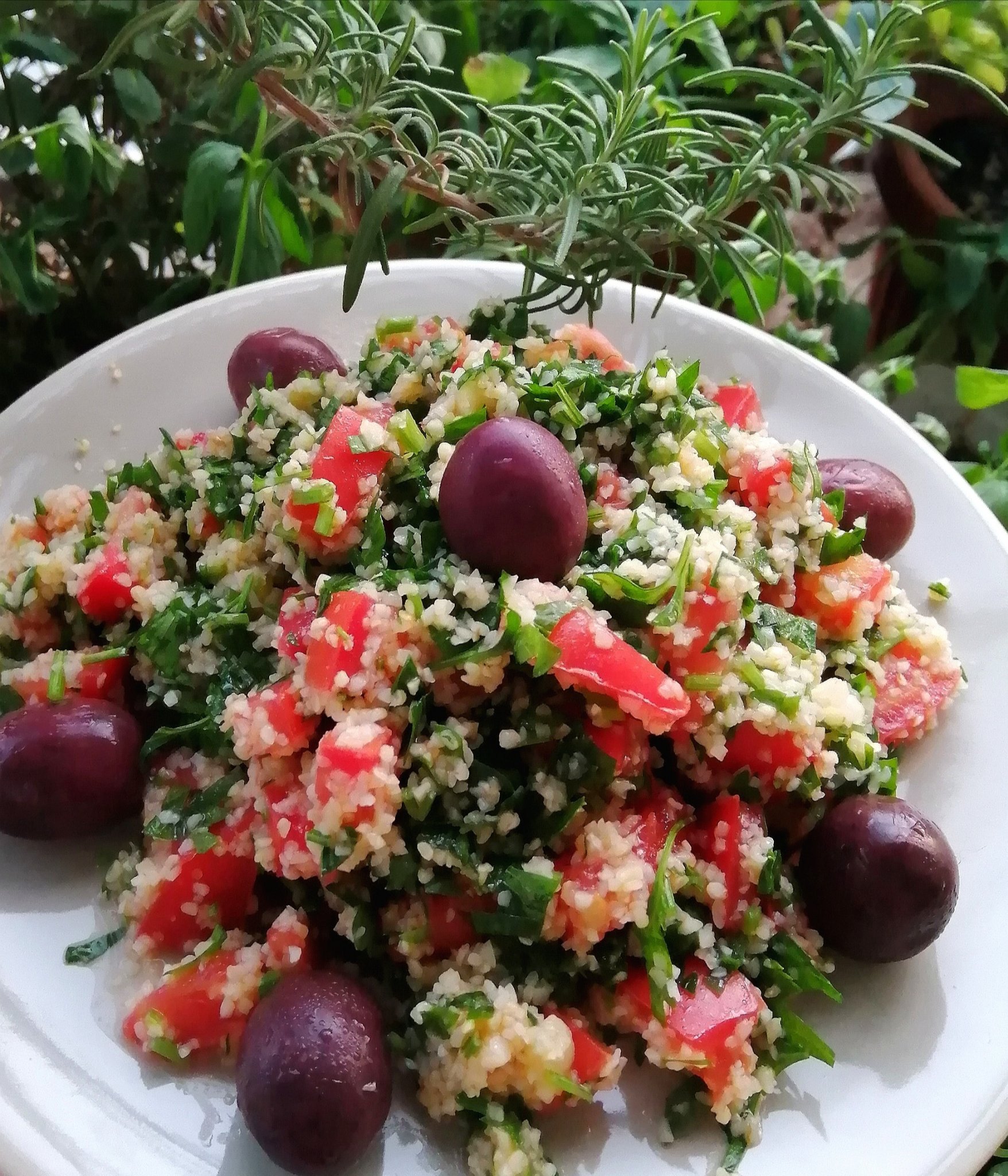Лятно-мързеливо у нас - салата с домашни доматки, пица, кюфтаци с картофи и галет със сливи.