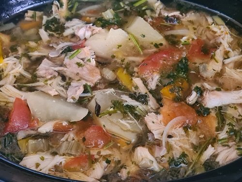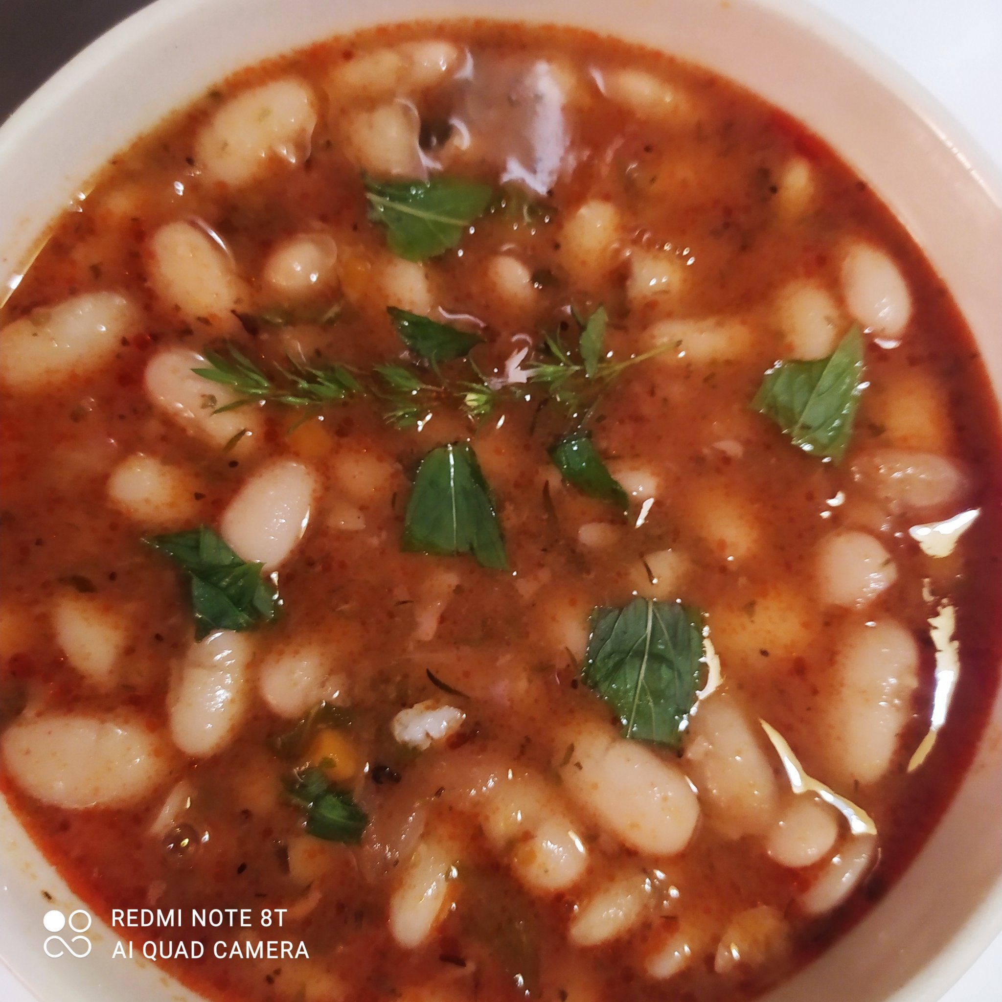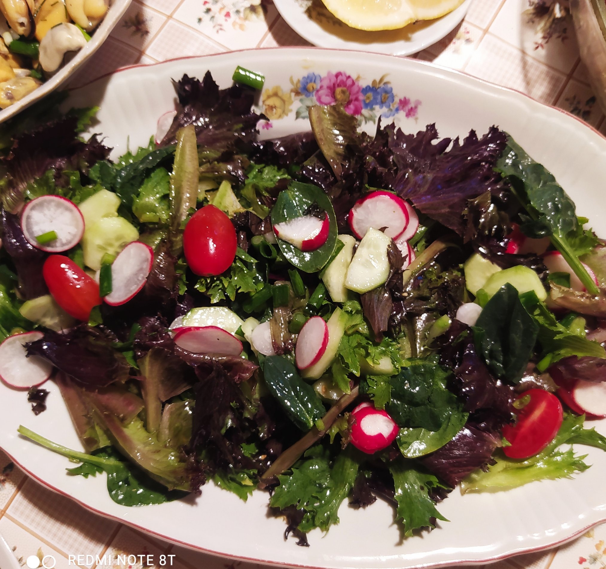 Нещо като супичка, но с малко бульонче, с тънки аспержи, стъблено броколи, грах, кайма и много магданоз