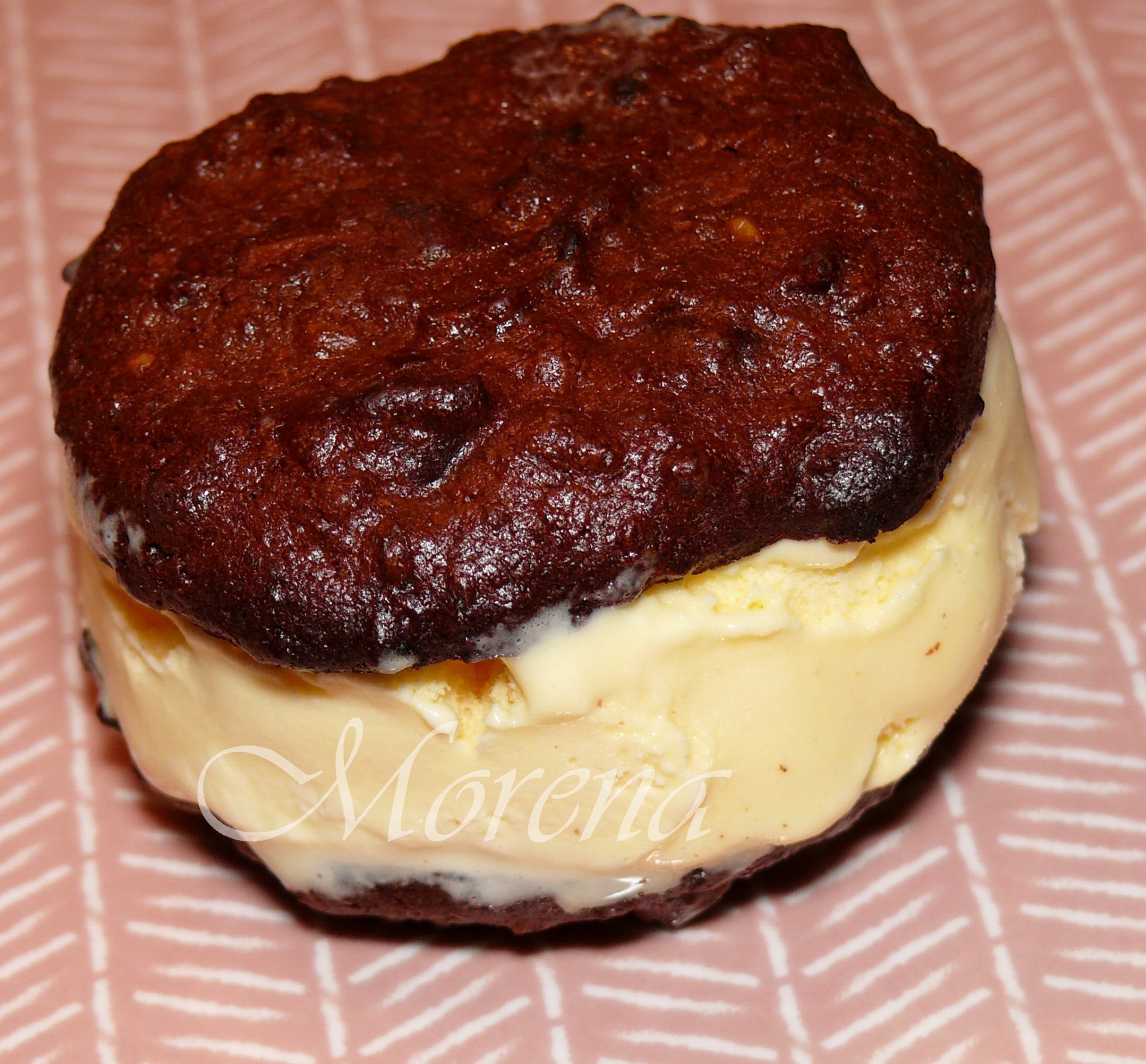 Сладоледен бургер с ванилов сладолед и домашни ръжени бисквити с бадеми и какаови парченца