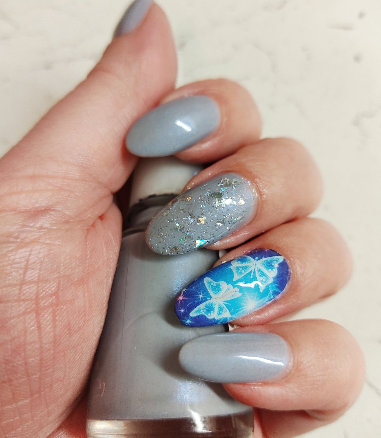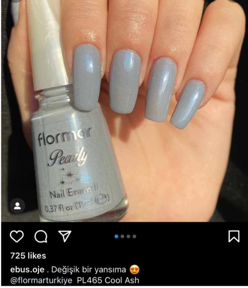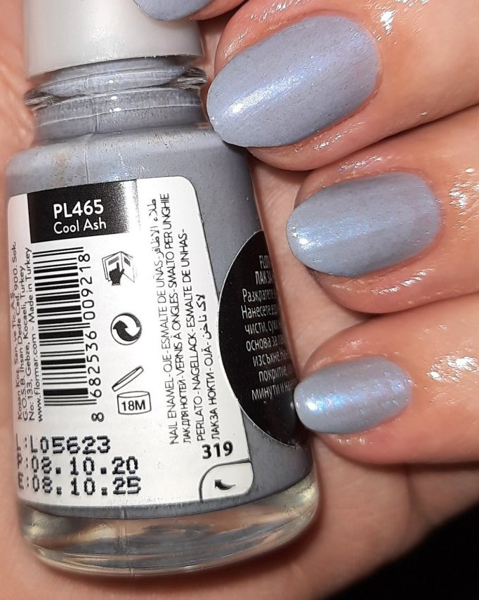 От мен Флормар PL 465 Cool Ash. Уникален лак, сиво-син, сив със син шимър (подобно на 454 Miss), но синее повече на живо, някак се смесват сивото и шимърчето, не мога да го опиша, но е чуден!💙