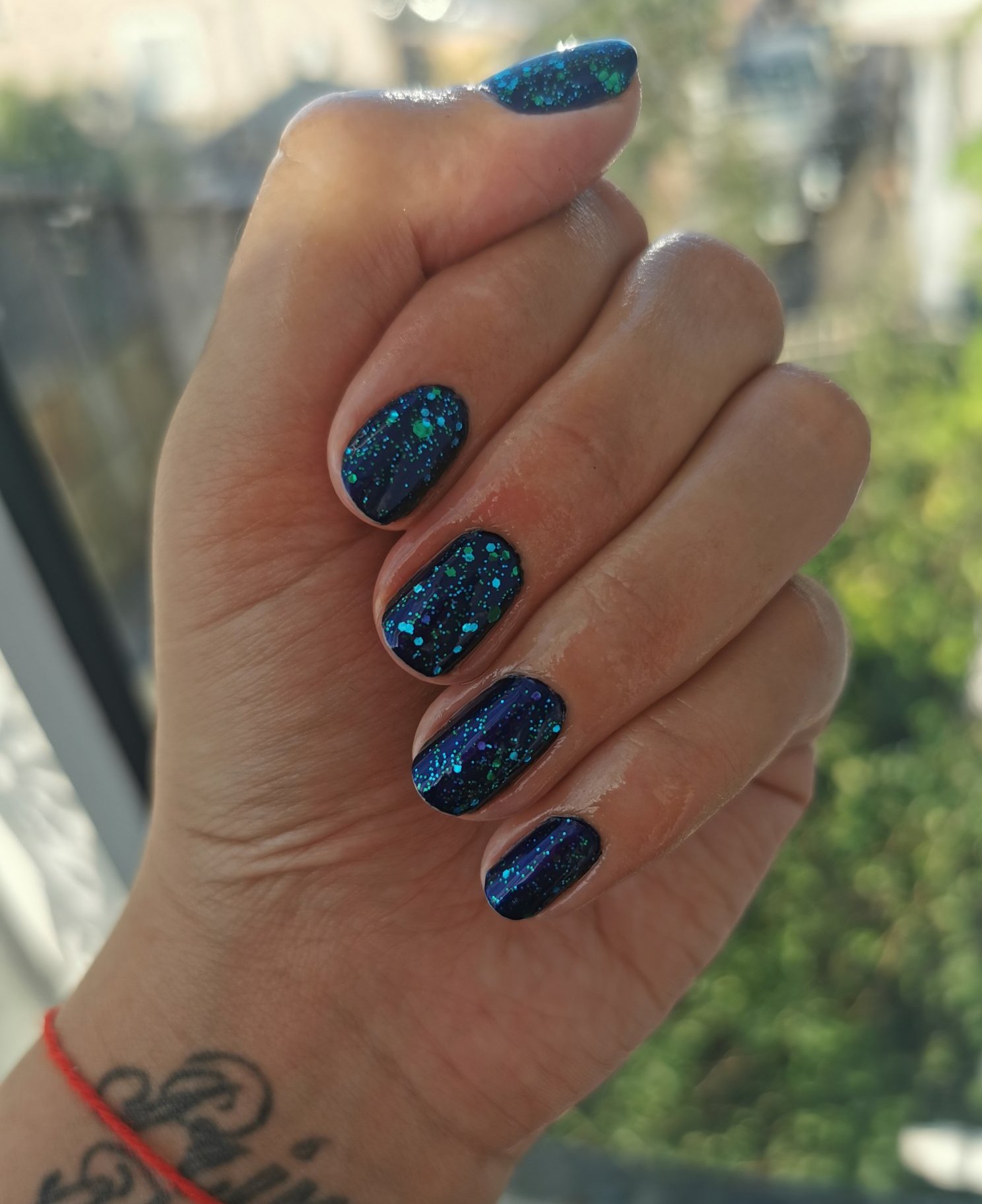Пускам, пускам 😄 Този наистина си заслужава. Нанася се лесно дори в жегите (1 тънък прозрачен слой+ 1 леко по-плътен, третият не е задължителен, а по желание). На някои нокти ми се получиха малко балончета, но дори те не могат да ми развалят хубавото настроение като погледна към лака 😃