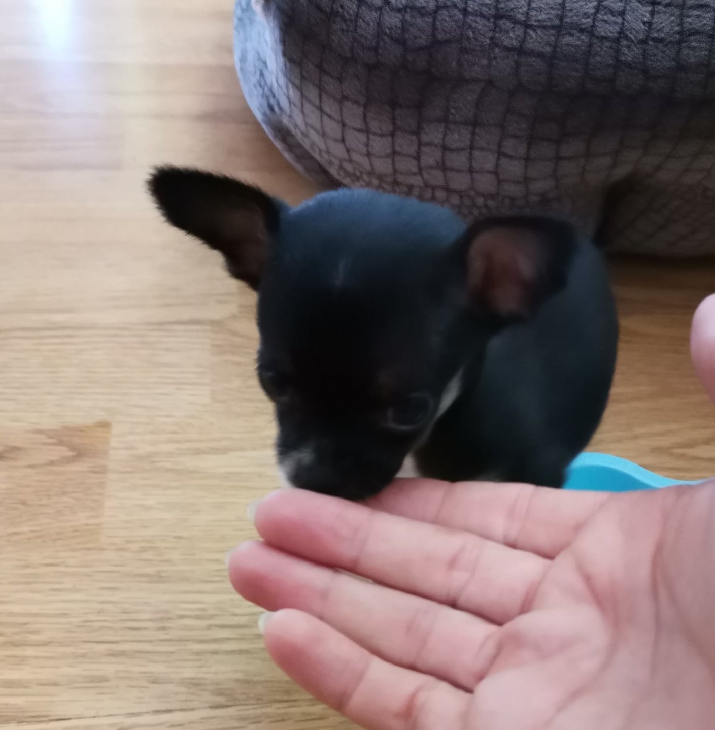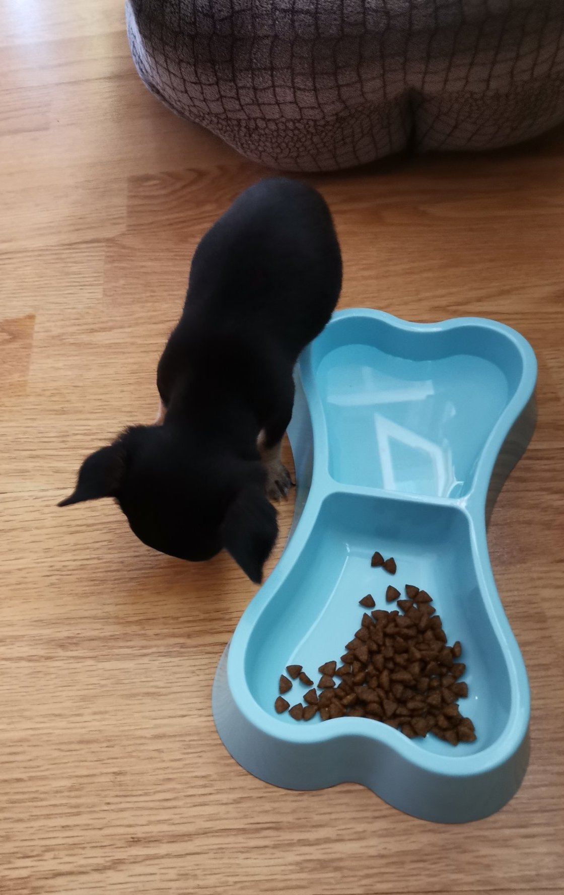 Миленка, браво на малкото геройче с насълзени очички ❤ И честито ви страшно куче 😍 Тя купичката му за храна май е по-голяма от него...😃