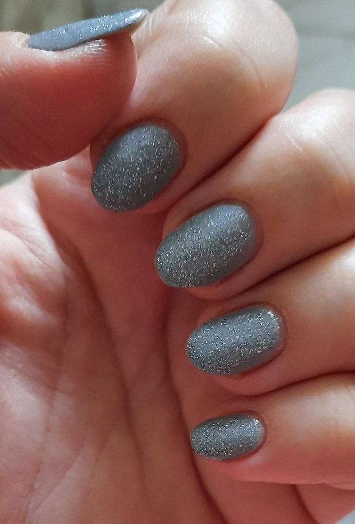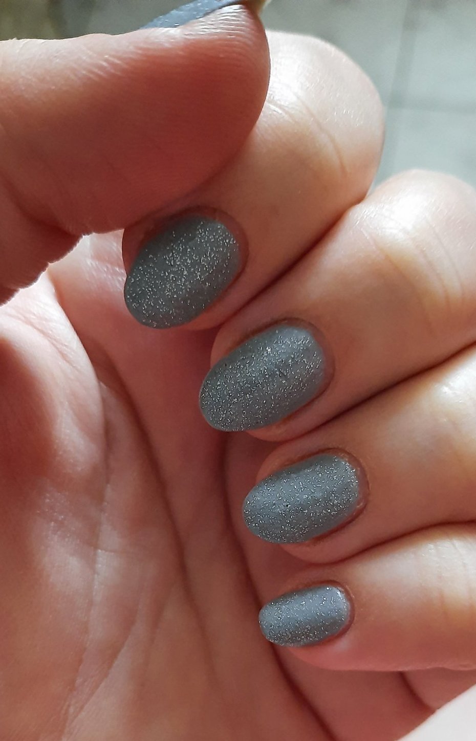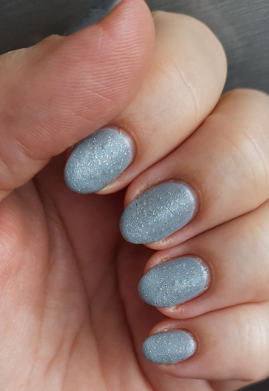Всъщност съм без база този път 🙂 Направо тънък прозрачен пласт лак, втори по-плътен и топ. На следващия ден сложих още един пласт лак и фин сребрист брокат вместо топ. На практика, същинският топ лак остана посредата... 😃