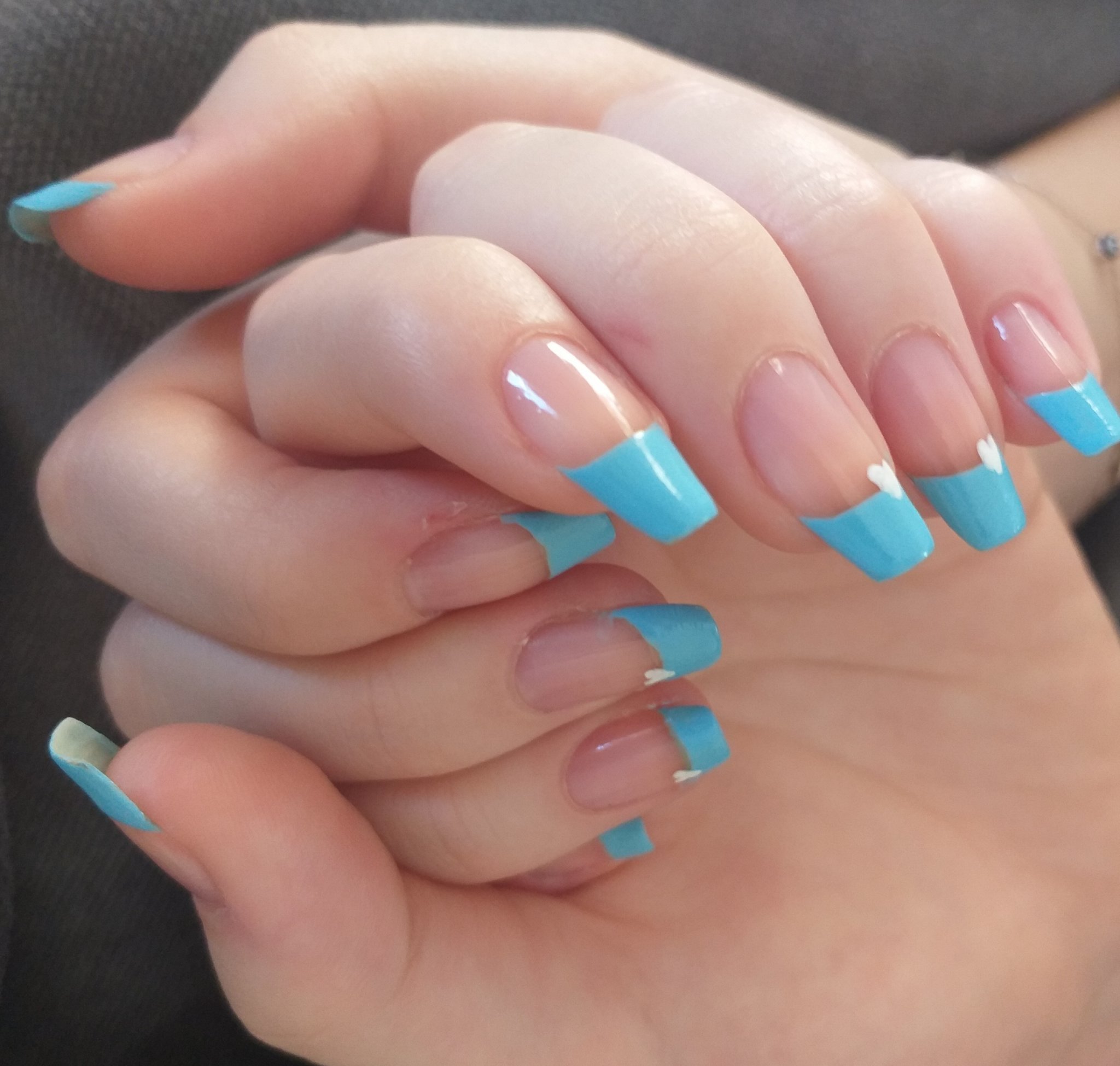Ето на дъщеря ми син френски със сърчица. Прави си ги направо с четката.