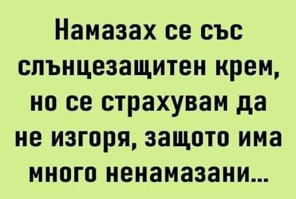 Когато можеш да получиш слънчево изгаряне от човека до теб в тролея, тогава ела да я цитираш тая умопомрачителна глупост.