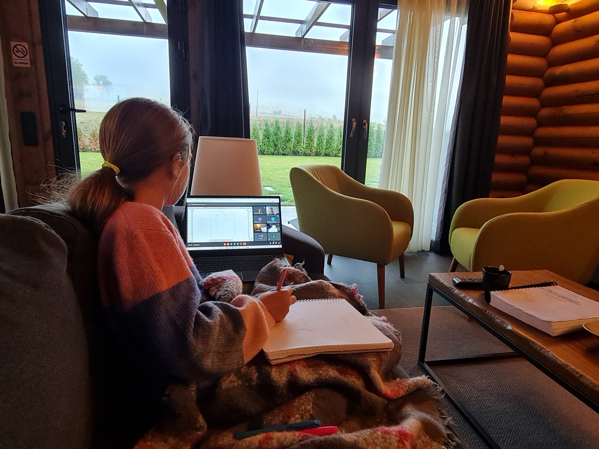 Добро утро. Онлайн урок в 8.30. Но пък предимството е, че може да се проведе от всяко място и ние веднага забегнахме извън София: