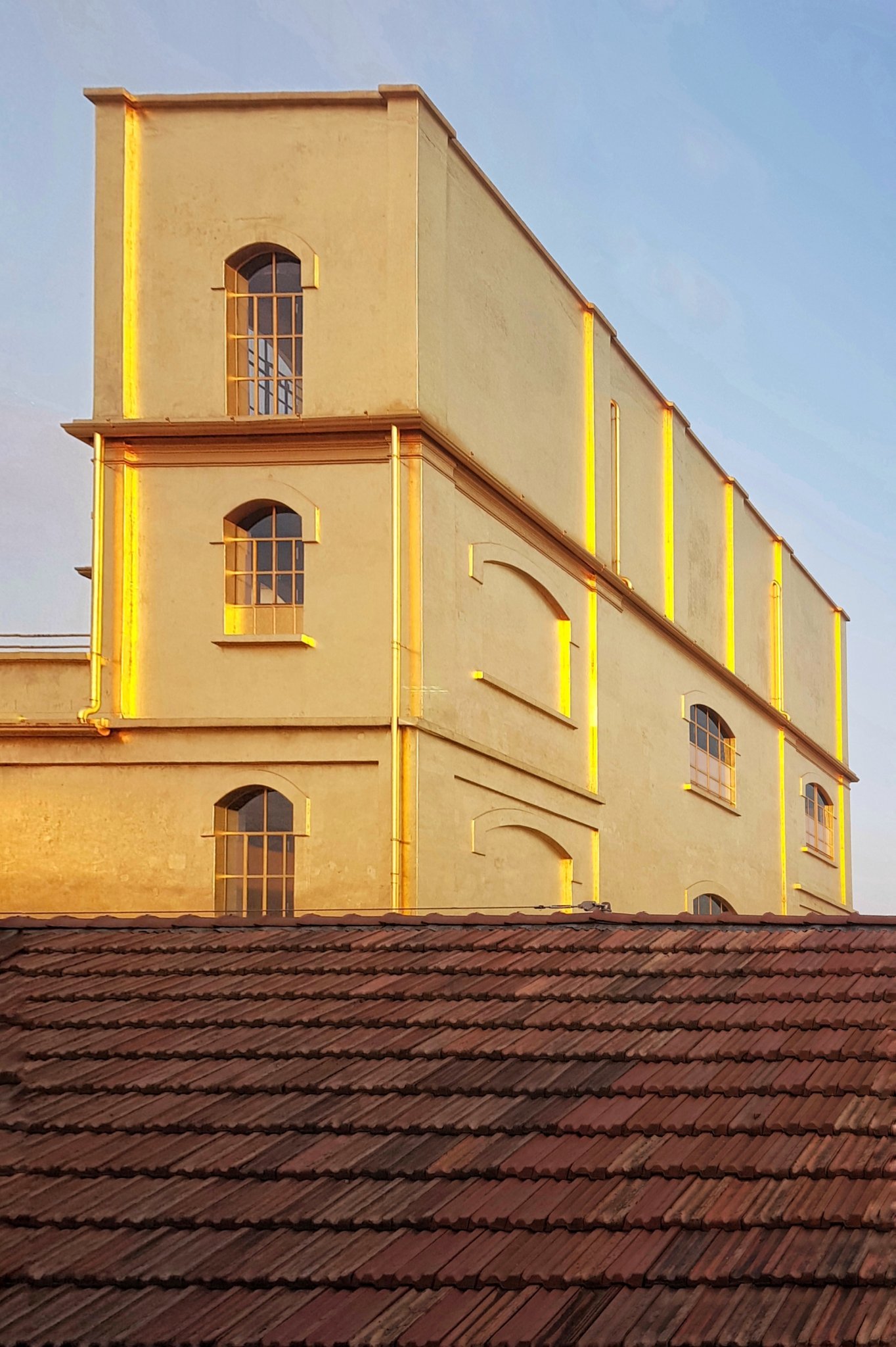В самата Фондация Прада, която е доста голям комплекс от сгради, са интегрирани множество такива стари индустриални постройки.