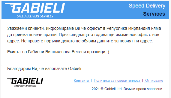 Аз моята още в събота я получих по Еконт, но вероятно потребителката пита за доставка с куриер на GGBG.
