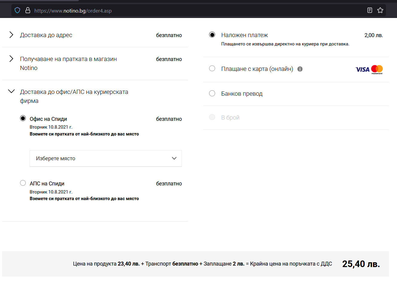 Няма такса доставка, само наложен платеж.