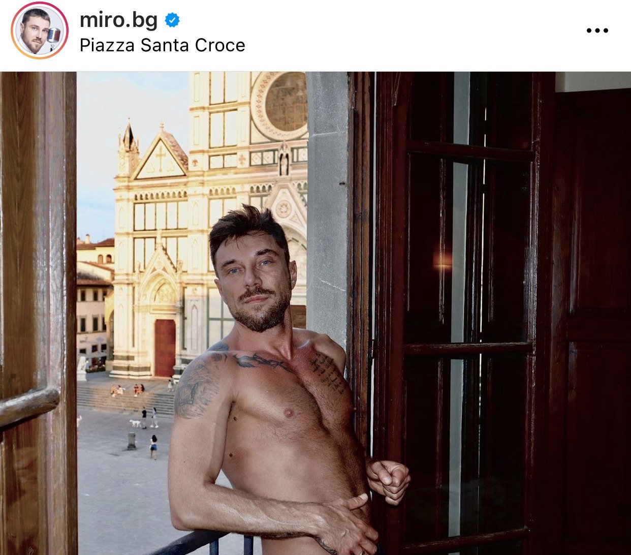 Също намирам Миро за превъзбуден и отегчен отново (рекламата, която беше постната от БНТ).  Конкурира се с кифлите да се снима гол на неприемливи за това места. В случая- Базиликата Санта Кроче. Колкото го харесвах преди, със същата сила ме отвращава от себе си. Това важи и за много други бг “творци, бохеми” и т.н.
