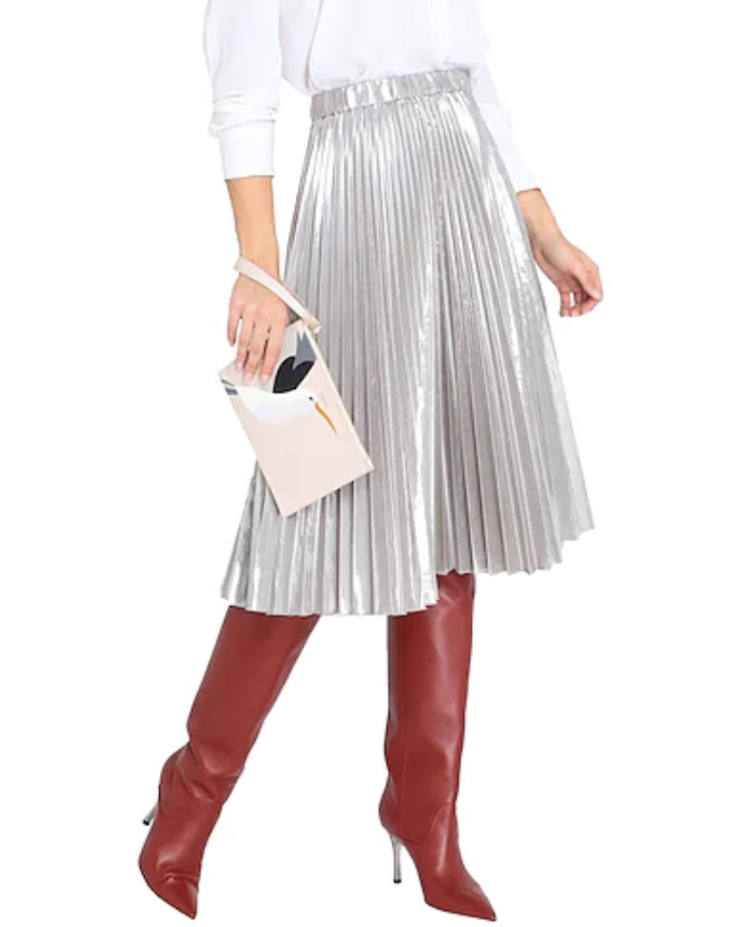 Аз харесвам този цвят с малиново червено (бургунди или марсала също), особено велур, ще стои много добре. Със студено сиво или тъмно-синьо също, матови кожи.