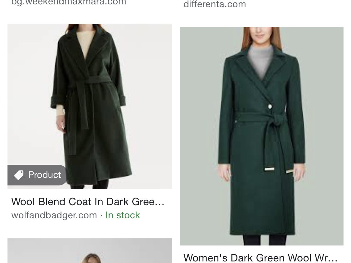 О, Аня, не се заемай с безнадежден случай. И без това имам 3 палта, но залепнах за цвета разкошен и си се размечтах понеже моите са все скучно сиви. Имаш ли идея какъв е точния цвят - пистачио? Последният от снимката със зелените палта.