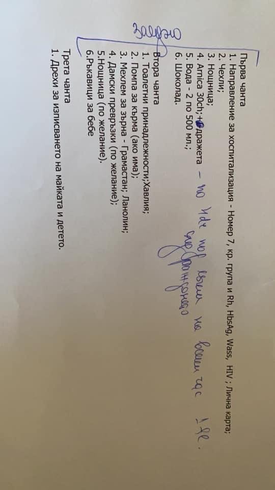 И друг път съм писала, болницата НЕ предоставя помпи и стерилизатори.