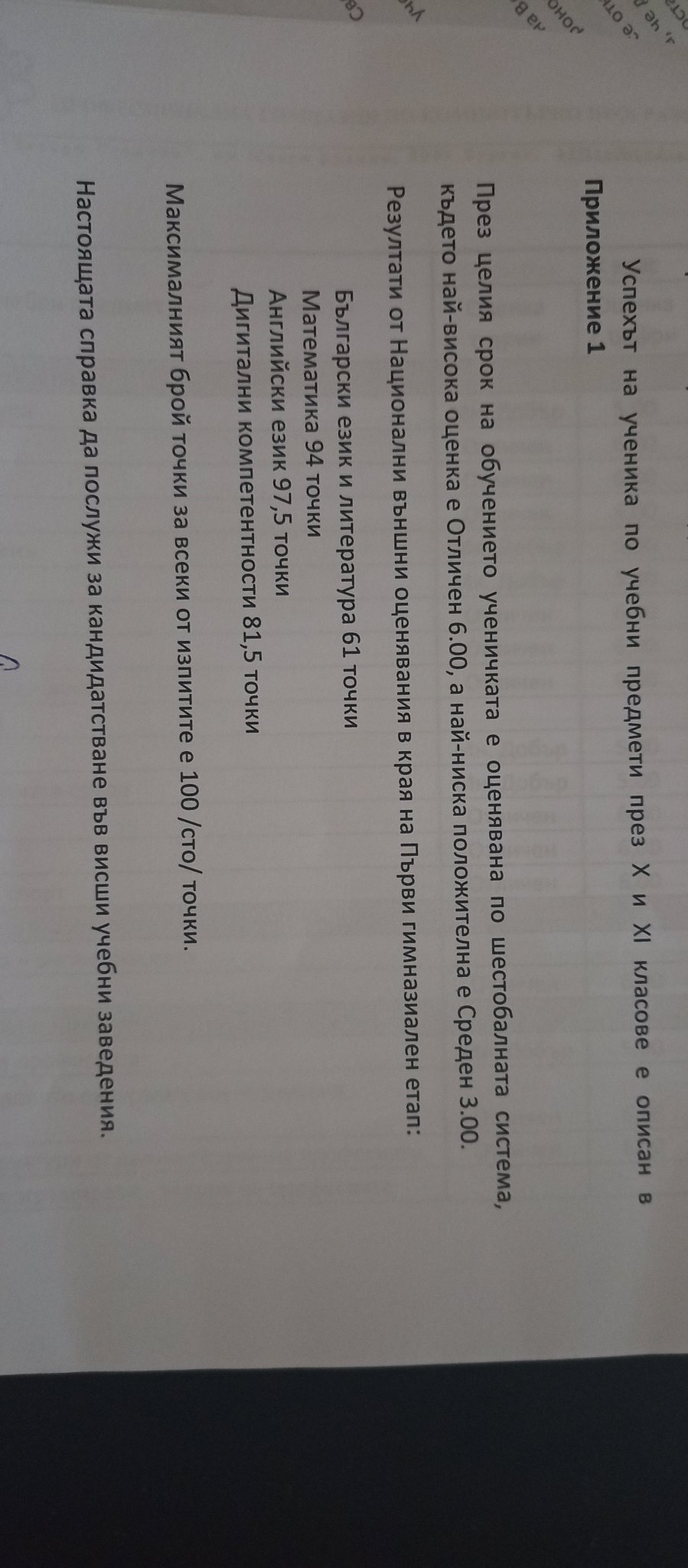 За кандидатстване в чужди университети искат академична справка от 9ти, 10-ти и 11-ти клас. Включително гледат и НВО по Бел и Мат за 10-ти клас