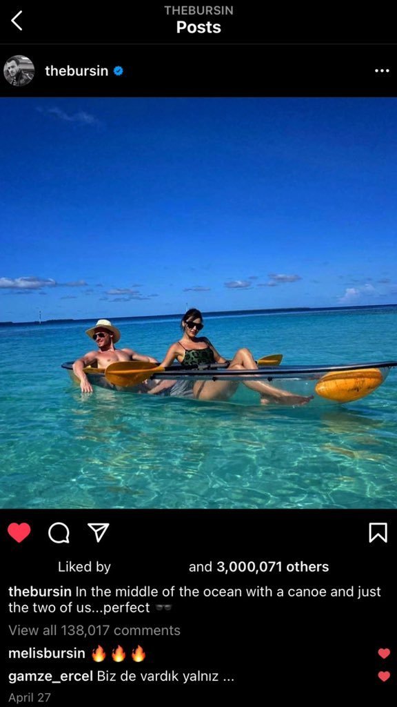 Снимката на Керем с Ханде на Малдивите достигна над 3 милиона харесвания в Instagram Sparkling Heart