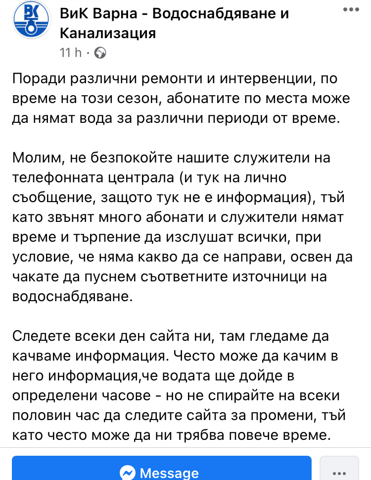 Ъпдейтвам си поста, за да онагледя наглостта на монополиста ВиК с принципал същата любима Община. Съобщение до всички, които с дни нямат вода. Милите, да не вземете сега да ги безпокоите…