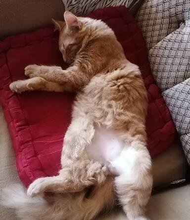 Киро е нормално развита котка. 4,5 кг за котарак с нормален ръст е съвсем стандартно тегло. Рижко е малко "по-загладен", но при него се получи от промяната му на живот. Все пак на улицата непрекъснато е бил в движение, а сега предимно спи. Кастриран е много отдавна - някъде около 2014 година. У нас е от две години. Дойде почти 6 кг (много е едър). Сега е към 6,5 кг.