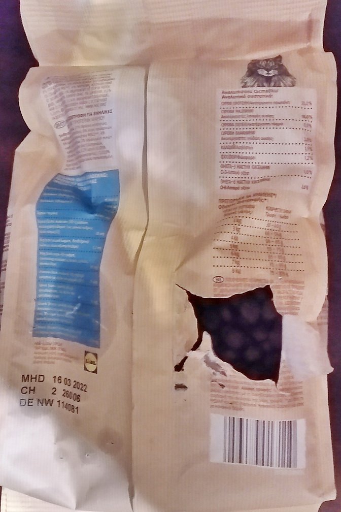 И да не са еко торбичките,явно всяка уважаваща себе си котка(в случая са котараци),изгризва чувалчето с храна,а синът ми твърди,че винаги от пакета е по-вкусно,отколкото от купичка:joy:(бях разказвала,доколкото си спомням).