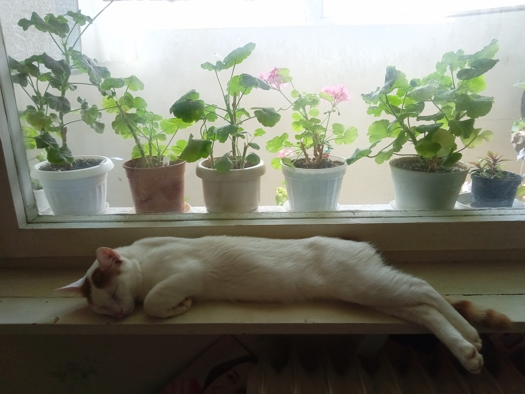 По перваза си имах разни неща,даже две саксии с алое...Той махна всичко.