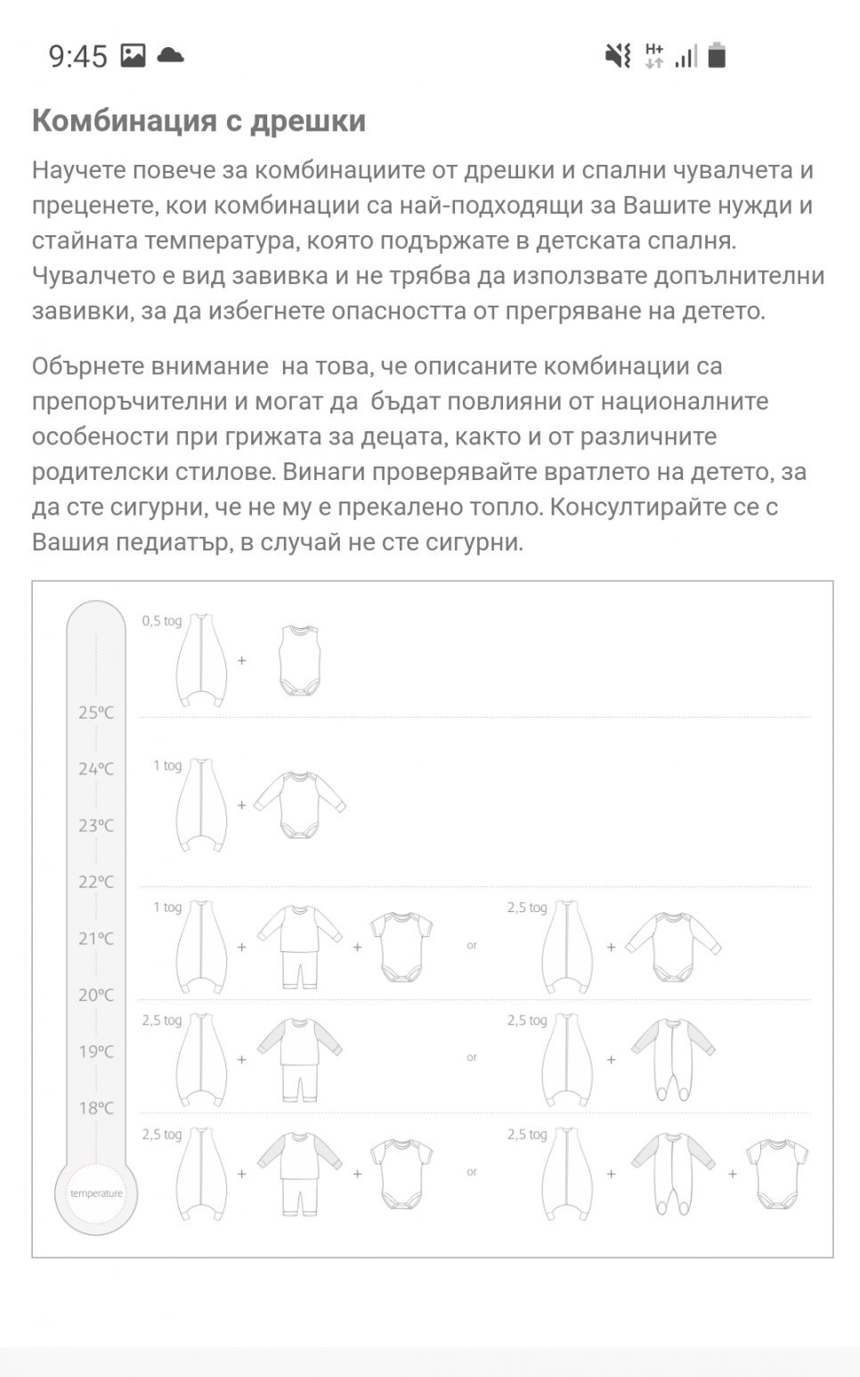 И аз ще взема чувалче, чудя се само с каква дебелина да е. Със съпруга ми сме страшно топлолюбиви и ни е невъзможно да спим на 20 градуса, та и детето няма да спи на толкова. Мисля да взема есенно, а не зимно, за да пасне на температурите у нас. Joy