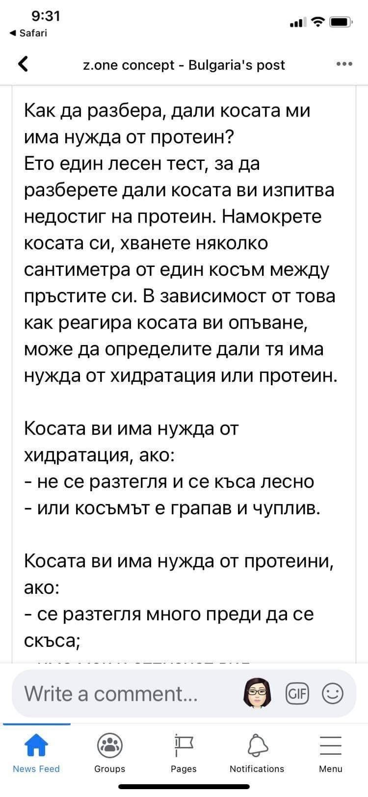 В началото, когато изпитах нужда да се грижа повече , косата ми се разтягаше и накъсваше, беше слаба и с изсъхнали връхчета(преди година горе-долу) Боядисвам се от няколко години, плюс възрастта и явно и тя започна да страда.