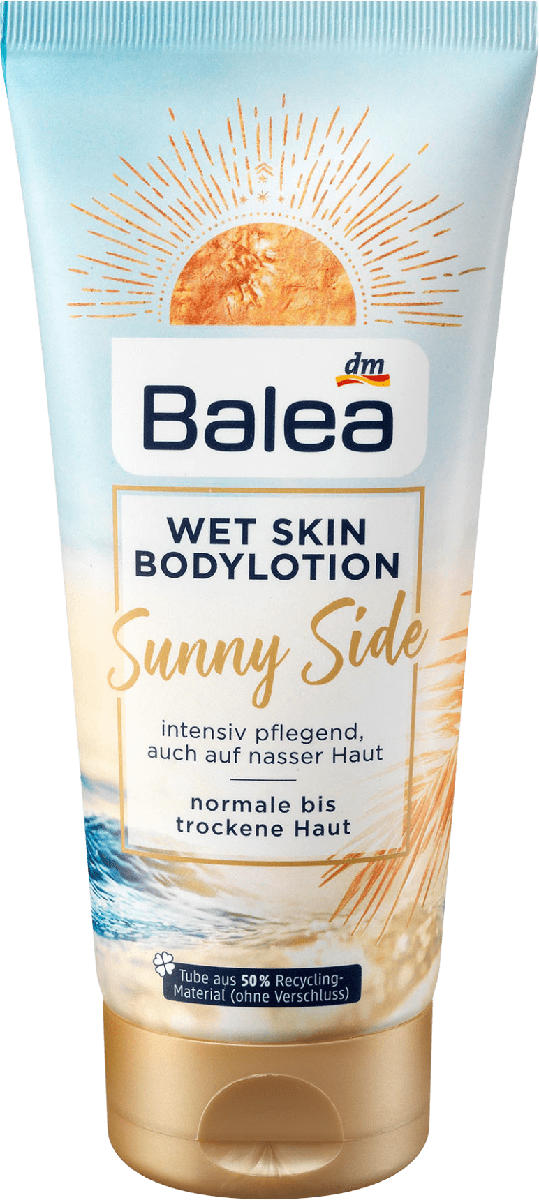 Взех си търсения лосион, всъщност се оказа, че е за нанасяне върху мокра кожа, а не с ефект на мокра кожа, както си мислех Grinning Има супер лека, гелообразна текстура и  охлаждащ ефект, много е приятен, особено за след плаж, попива бързо и не лепне, но кожата се усеща хидратирана. Ароматът е някак плажен, но без да е сладък, интересен е, не съм срещала подобен, сякаш на несладък кокос и несладко какаово масло, не мога да го обясня по-добре. Вечерта като го нанасях не видях блясък, обаче на другия ден на слънце забелязах златисти блестящи частици, чак в първия момент се зачудих откъде се появиха Simple Smile Заинтригувана съм от серията, бих си взела още неща, например душ гела и сапуна.