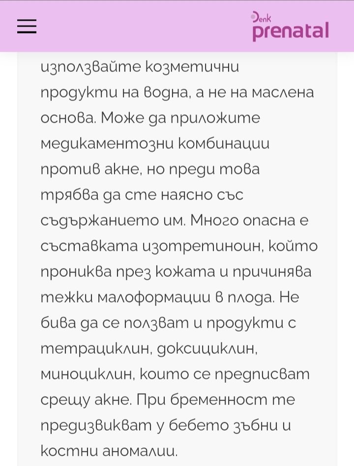 При мен не е точно акне, а като черни точки/мини пъпчици и аз не мога да разбра какво е, но го имам от преди бремеността. Веднъж успях да ползвам една доза от серума на мястото и лицето ми се изчисти, но сега ме е страх.