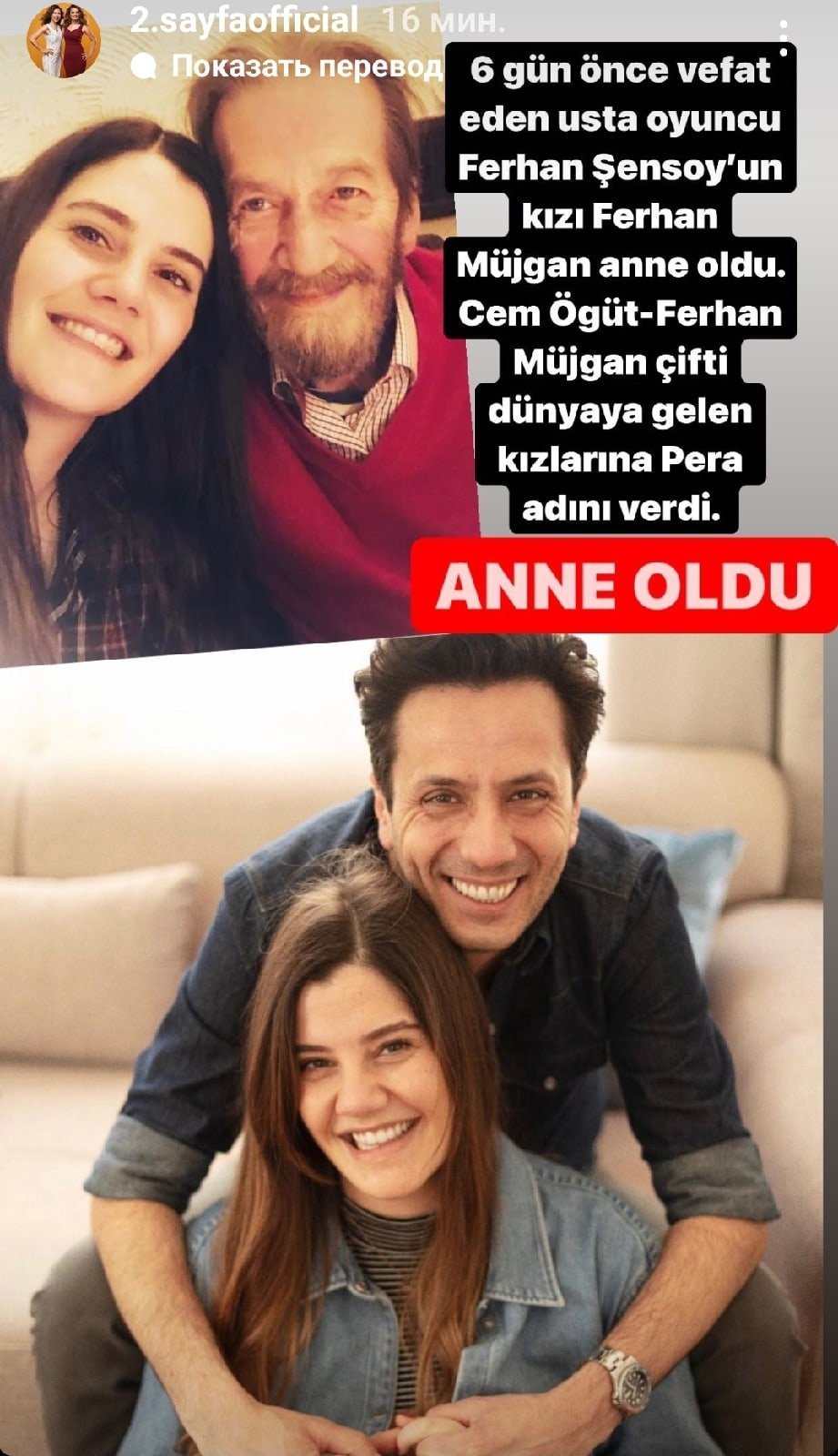 Актриса Ферхан Мюжгян Шенсой стала мамой. У нее родилась дочка, которую назвали Пера.