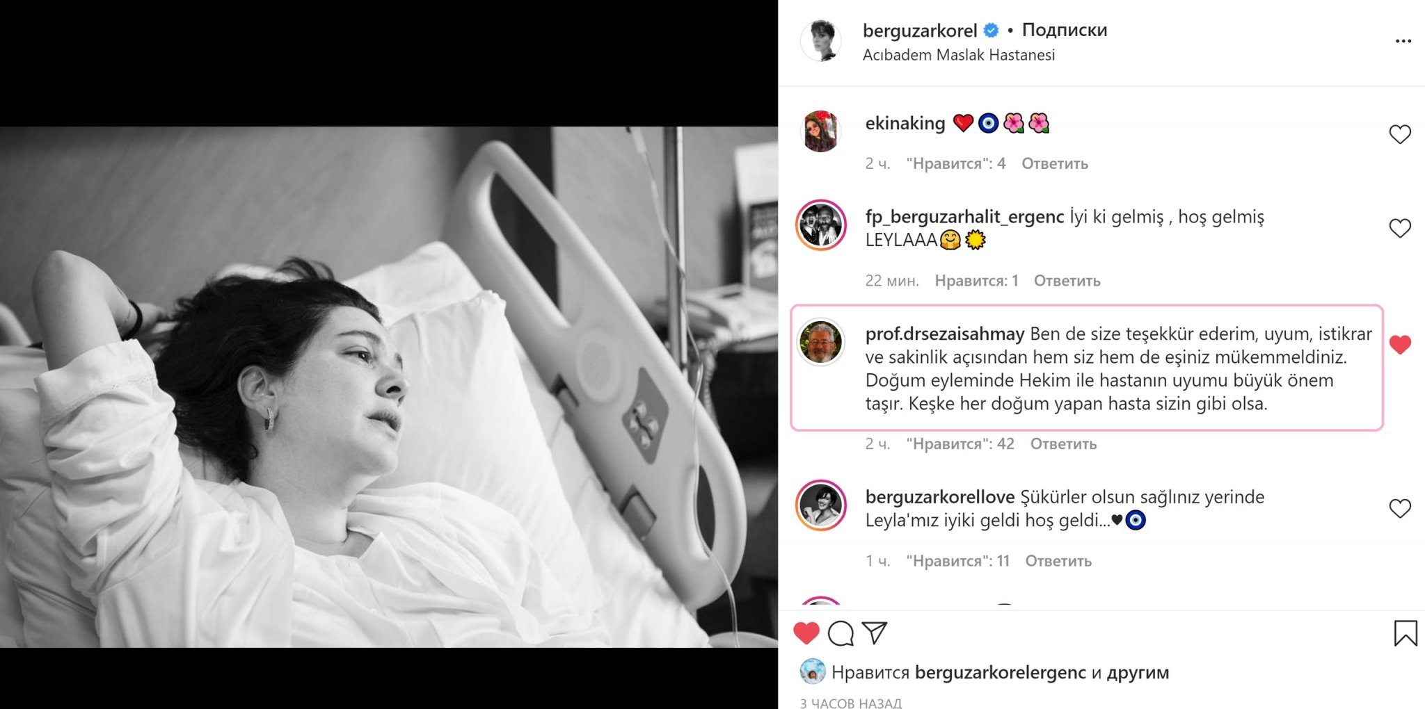 От проф. Сезаи Шахмай - "Я тоже благодарю вас, вы и ваш муж были идеальны с точки зрения гармонии, дисциплины и спокойствия. Гармония врача и пациента имеет огромное значение при родах. Хотел бы я, чтобы каждая роженица была такой же, как вы..."