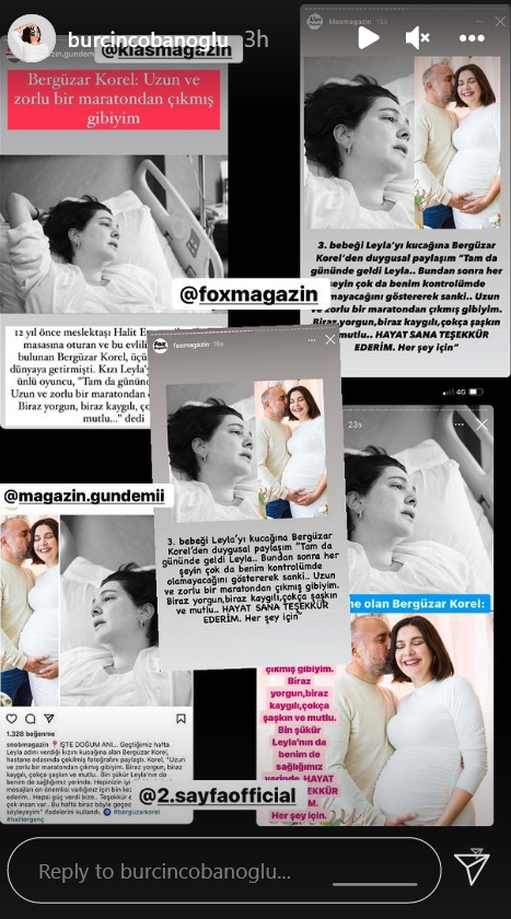 Последните публикации на Берг преди да роди, бяха на 1 ноември, а на 2 ноември вечерта Хюля се прибра у дома. Преди снимката от дома, публикува тази - пътува в такси.