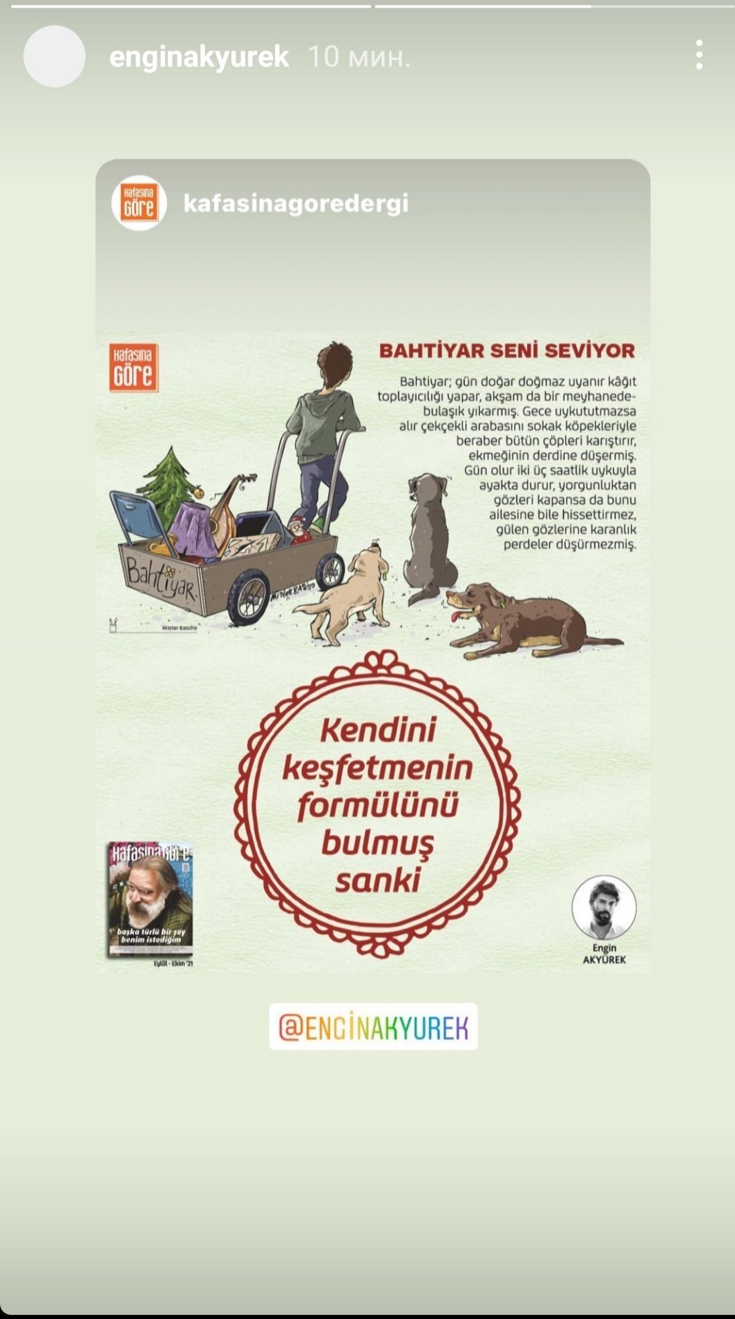 Преди няколко часа в инстаграма си списанието "Кafasina gore" сложи пасаж от разказа на Енгин от бр.40.