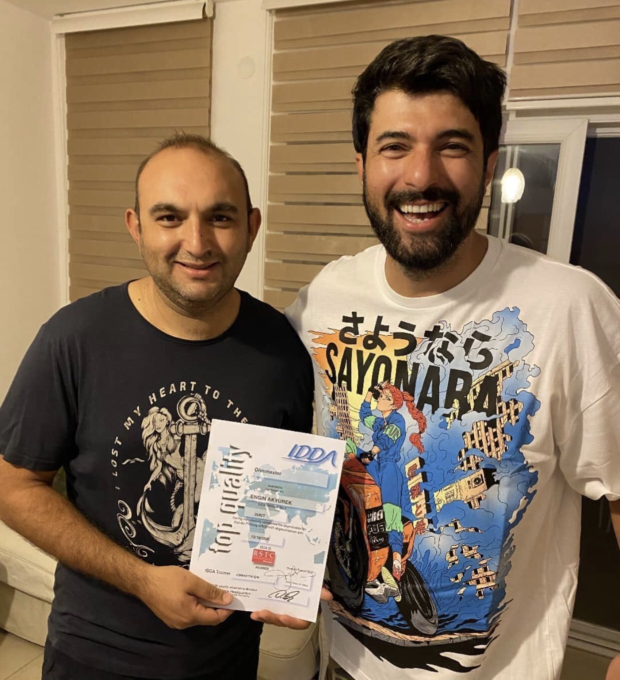 Снимката със сертификата за гмуркане на Енгин е пусната от инструктора Осман Ялчън.