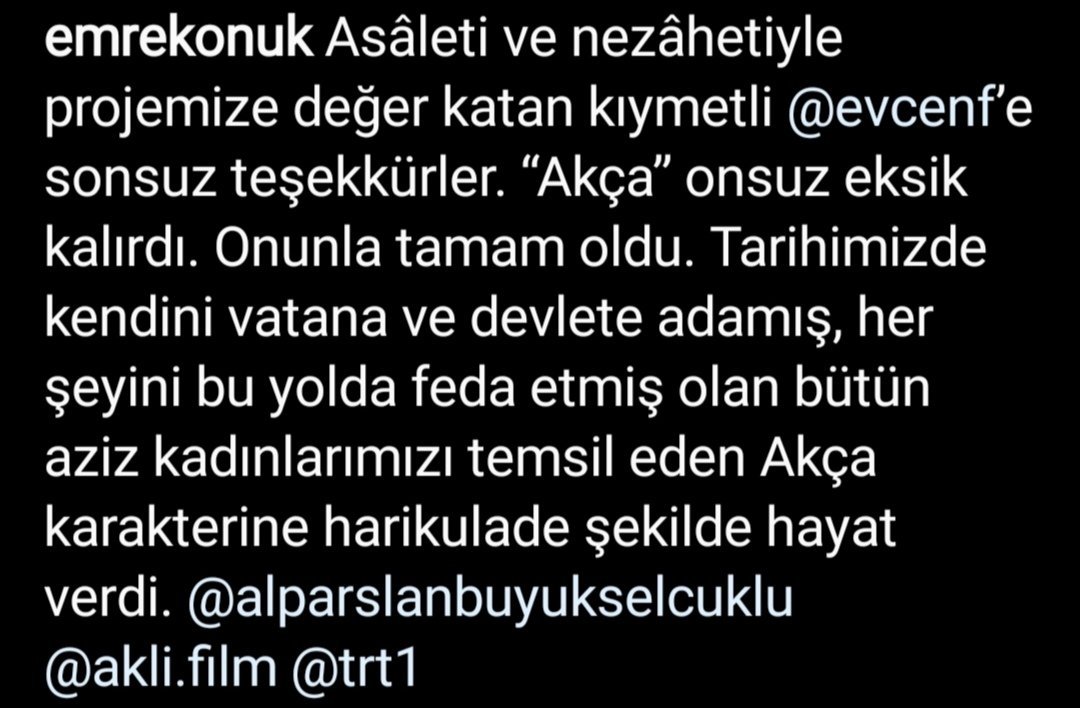 Написал е:"И батко Баръш. Толкова е забавно и приятно да работиш с този красив мъж, че не мога да ти опиша. И е по забавно да си двойник на този човек, защото той прави всичко сам. Благодаря за всичко Мелик АлпАрслан!