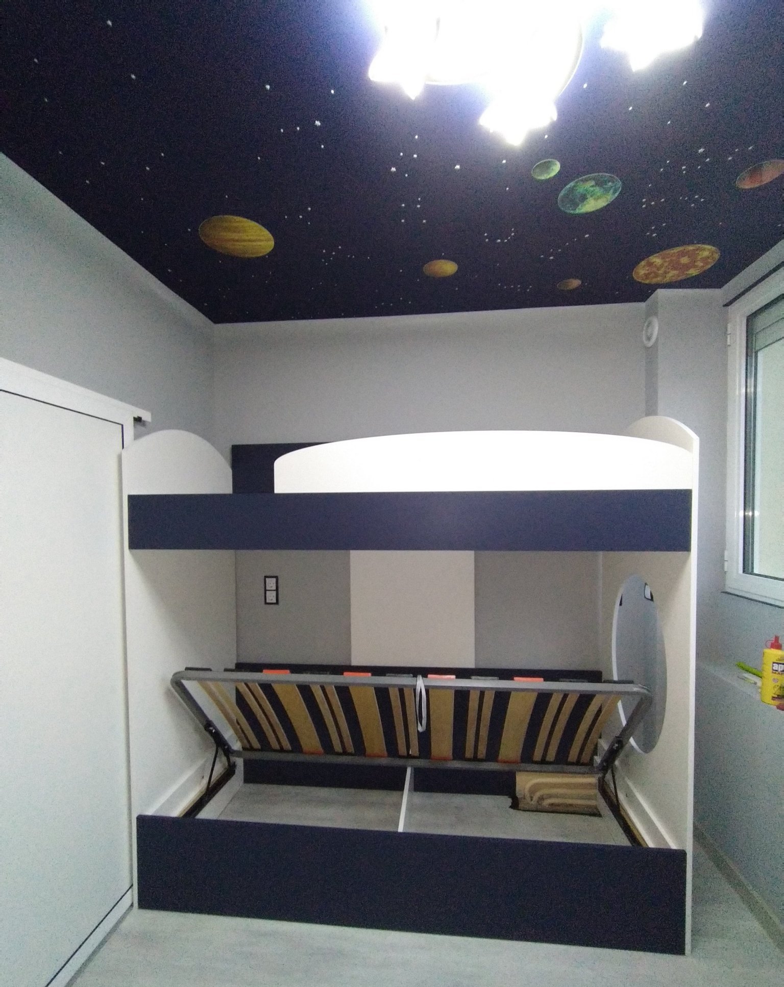 Размерите са като вашата. Бюрото трябваше да бъде друго, но това ни го подариха и за първо време става. Леглото е малм 120см, предстои да купим контейнери. Също така гардеробът ще бъде сменен с такъв до тавана. В последствие ще направим и ново бюро по подобие на това.