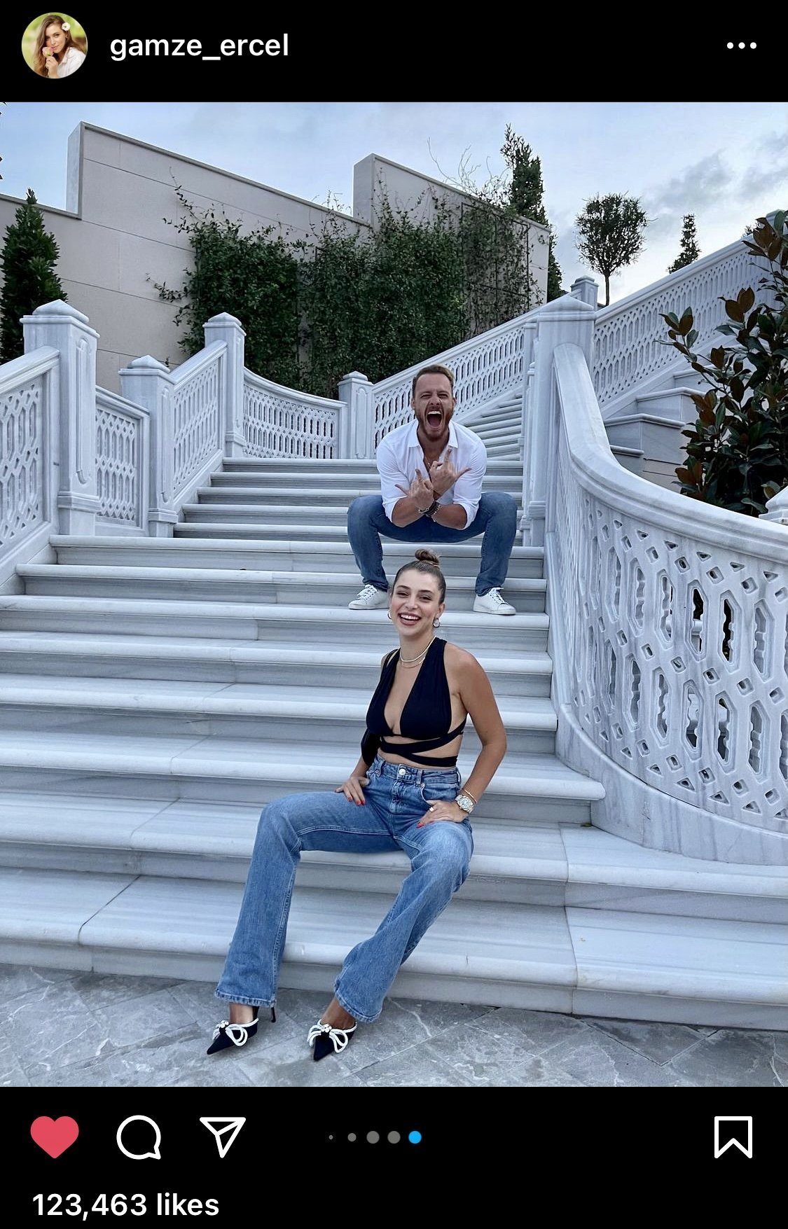 На ресторант са отишли. Керем както винаги прави шегички. Това е първата официална снимка на Гамзе и Керем. Както отбеляза БРО нещата са сериозни.
