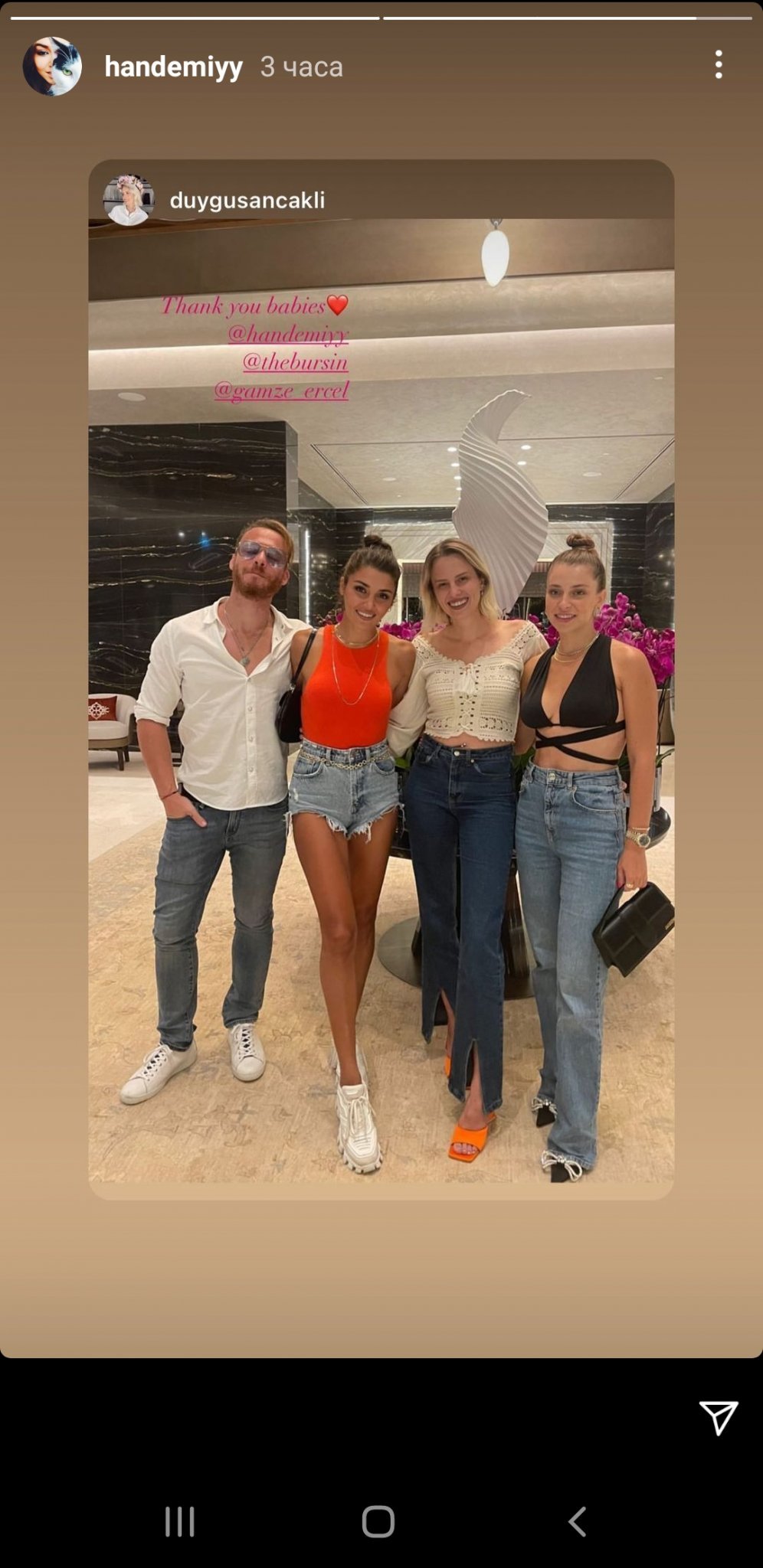 Снимките на Ханде и Керем са от ресторант, по време на ваканцията им в Бодрум, преди няколко дни (деня, когато отблокираха Керем в инстаграм Wink)