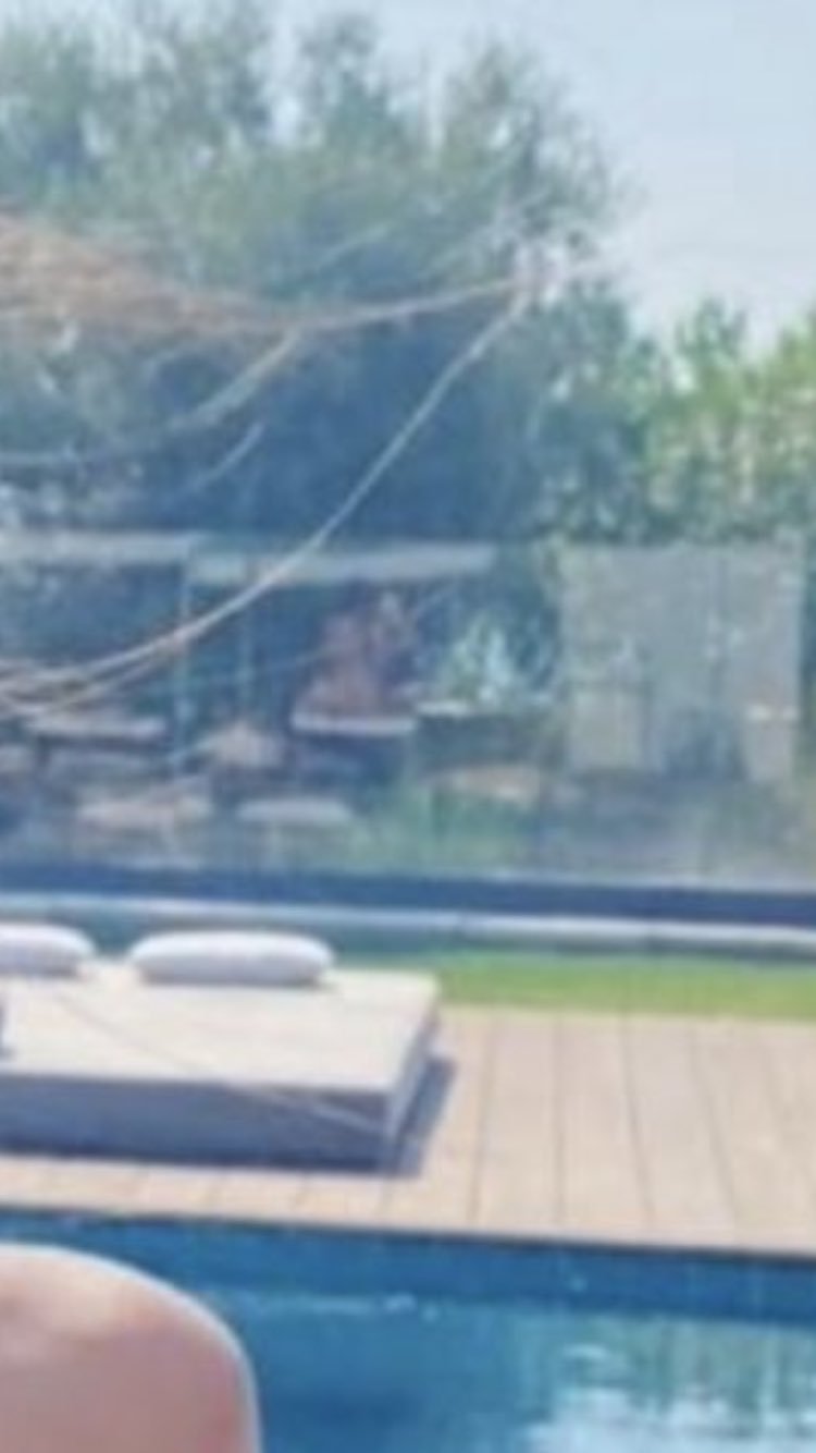 Мокър Керем излизащ от басейна показващ баклава... Отсреща смееща се Ханде... Помечтах си, сега отива да се трудя, а вие довечера споделяйте.
