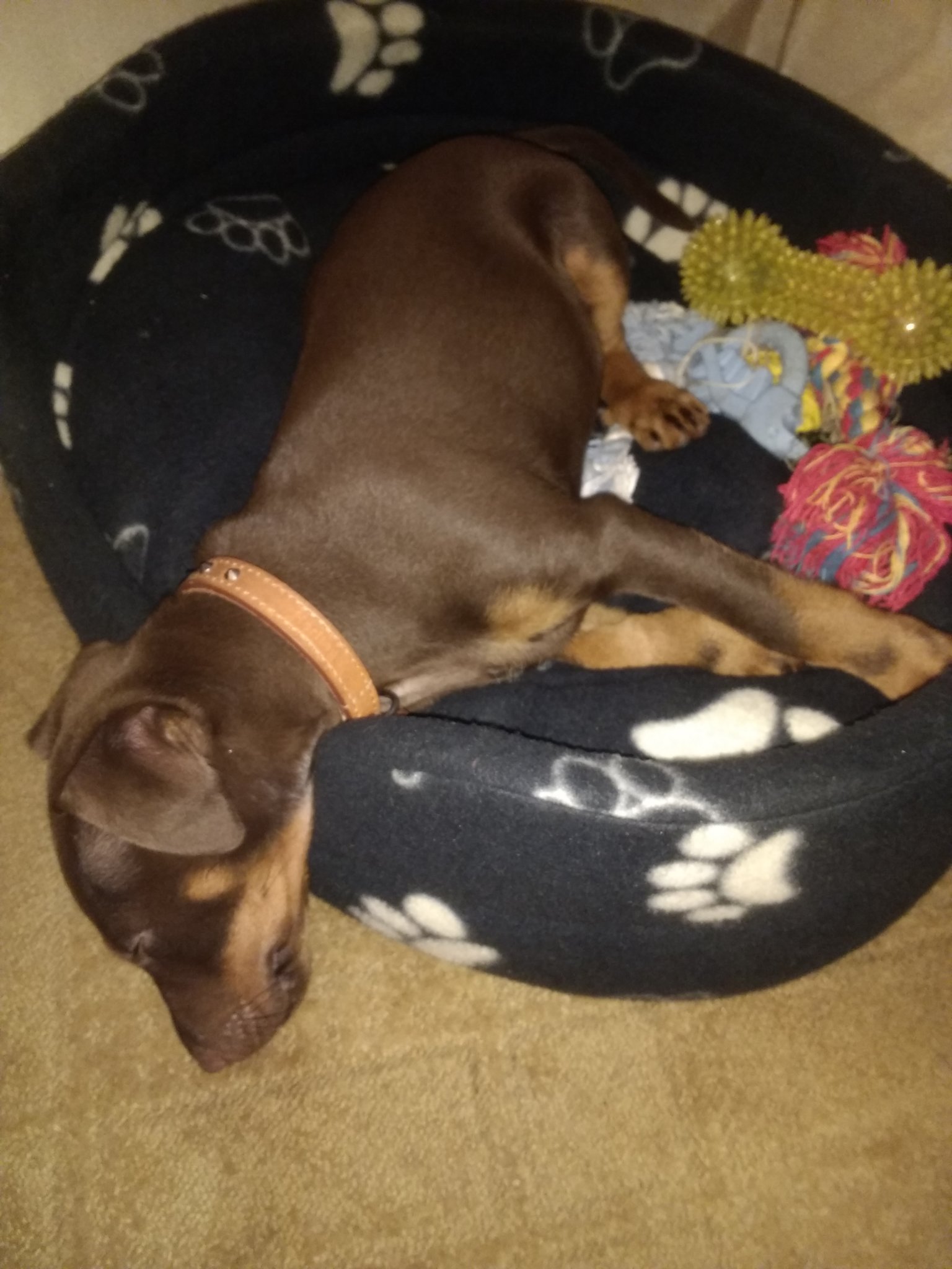 От мен лека нощ! Да си знаете - добро куче е измореното куче LaughingLaughingLaughing Близо 2 часа бяга като изоглавен из градината, едва го прибрах, набързо хапна и се тръшна /естествено преди това си прибра играчките/ Laughing