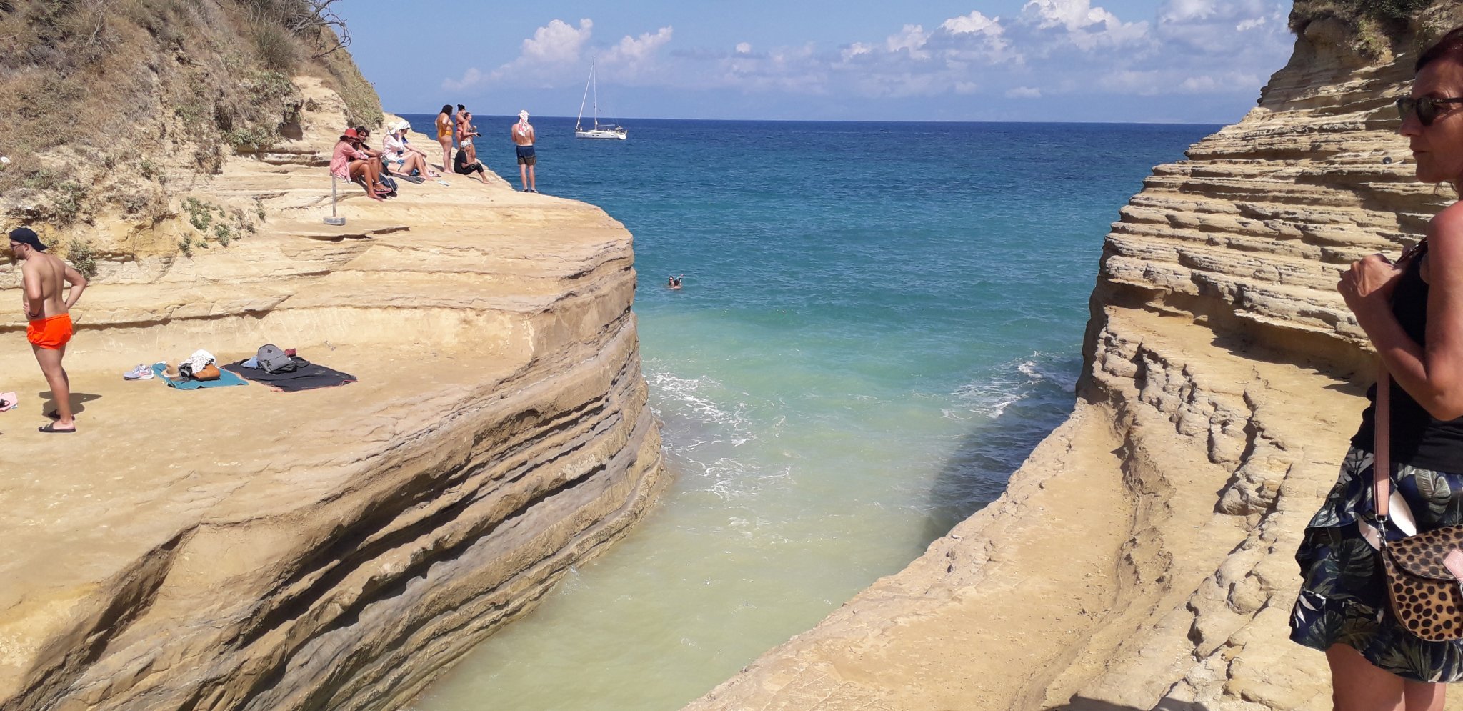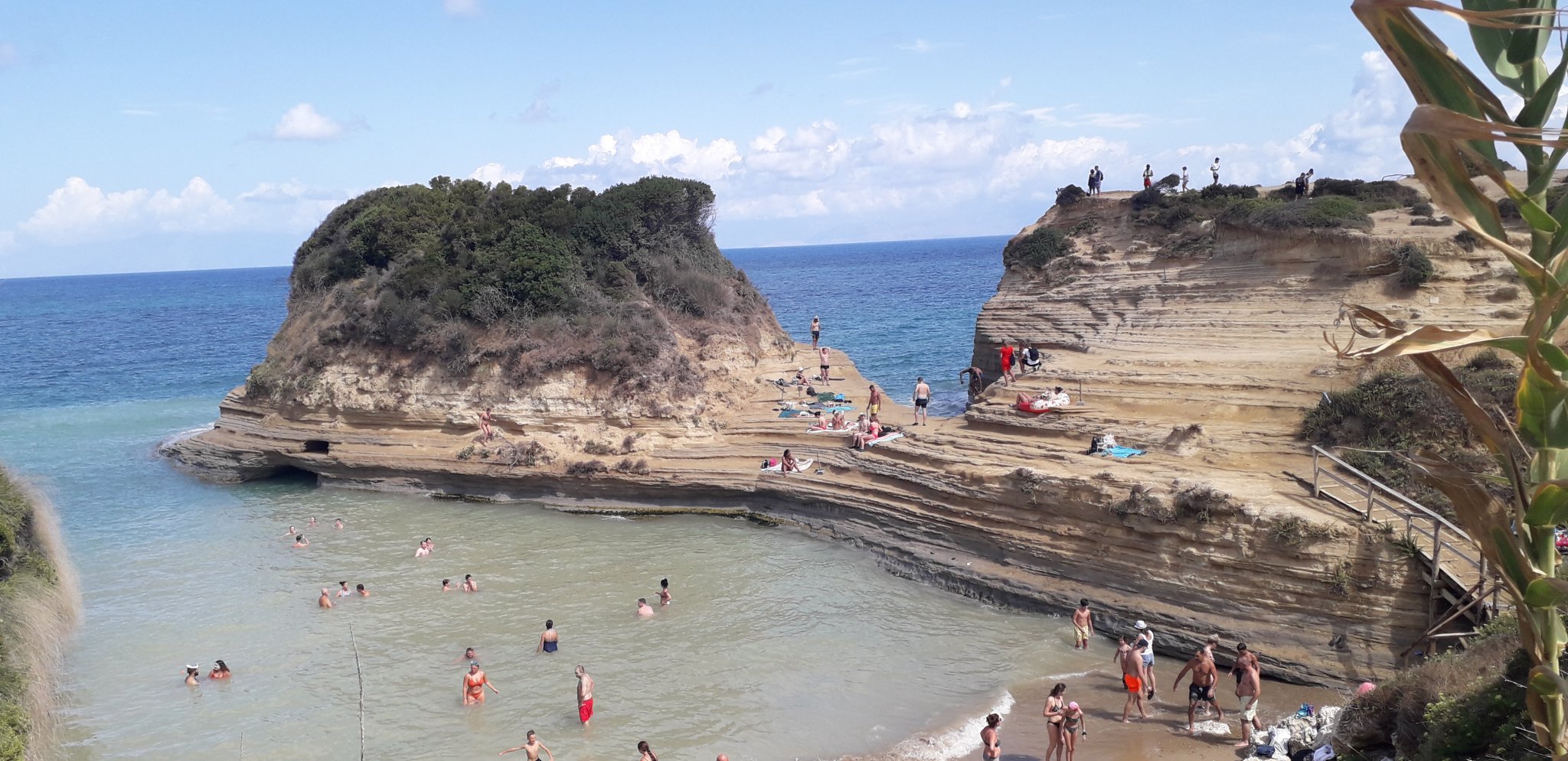 Сидари - много, много красиво със скалните образувания, с твърде много хора покрай тях. Мъжете се разбиха да скачат и гмуркат. Градският плаж е голям и пясъчен, с много чадъри само срещу консумация.