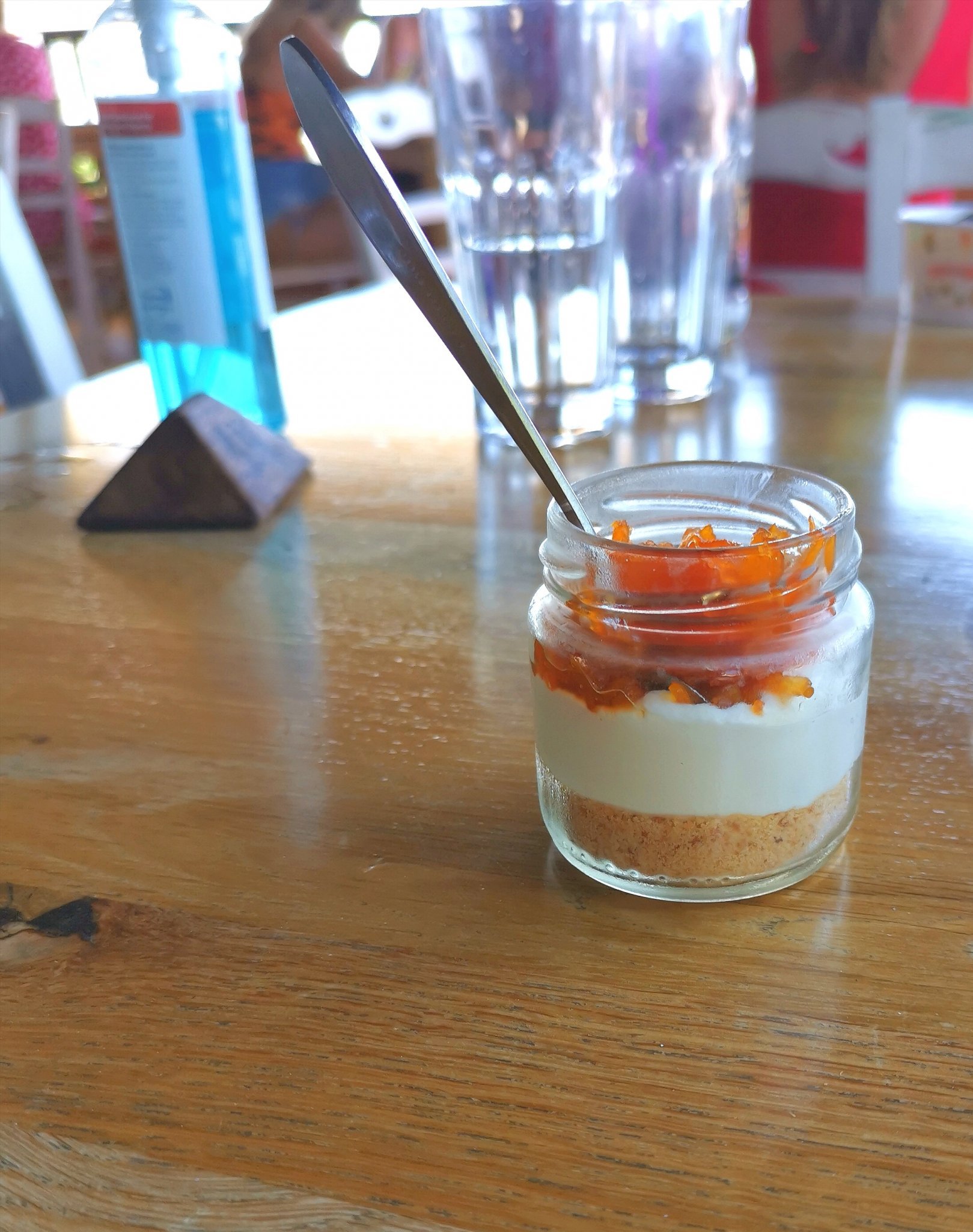 Плажът ни хареса, фин пясък, кристална вода, но доста хора. Това е най-гъсто населения плаж на който сме били на острова. Тук за пръв път видях повече чадъри и шезлонги от колкото свободната зона. Пак си намерихме място, но във водата трябваше да заобикалям хората.