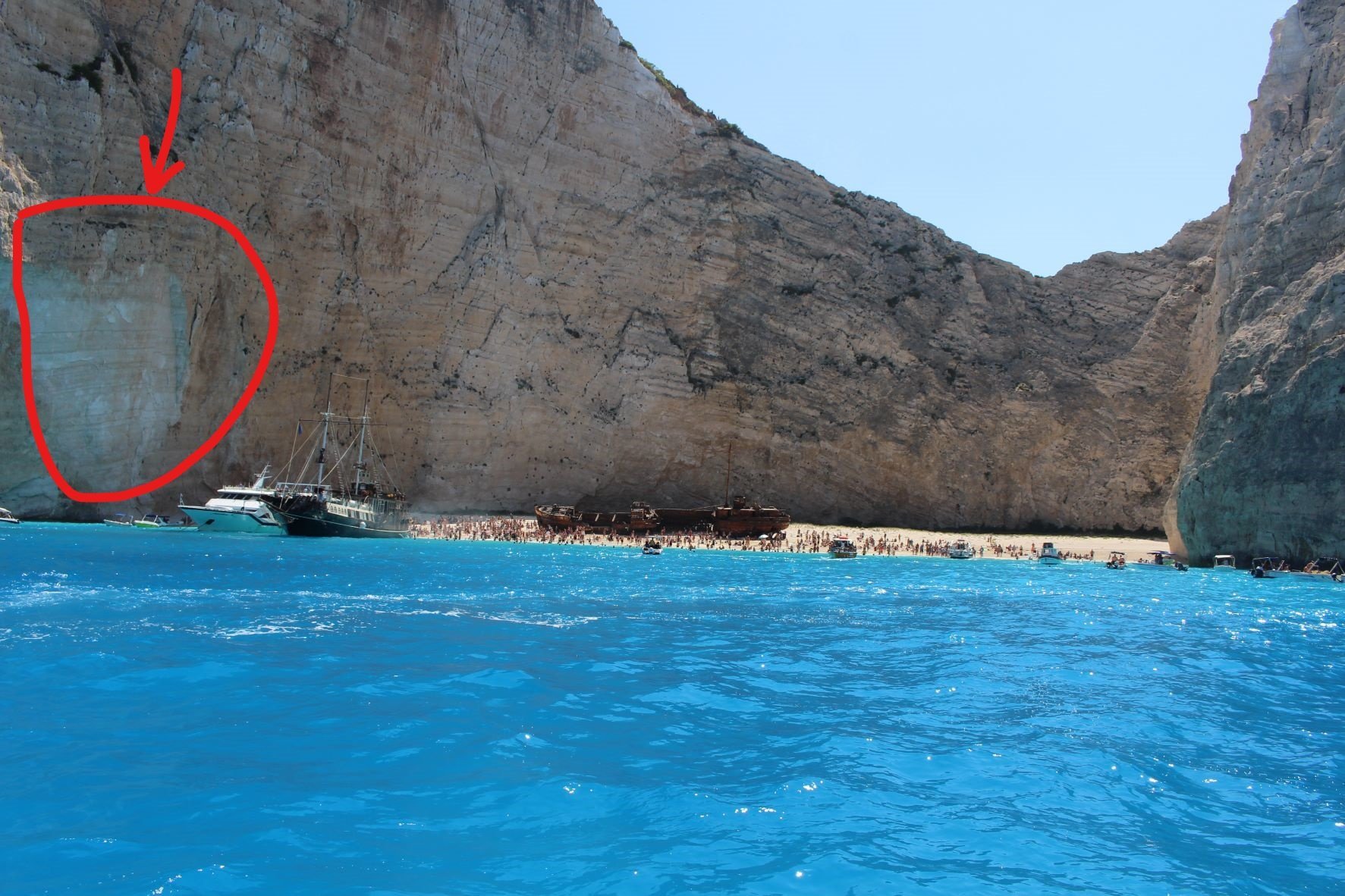 На Навагио имаше оградена с въженце една малка част от дясната страна, гледано от морето, където не можеше да се минава. Доколкото си спомням обаче, последното срутване беше от другата страна - там и скалата беше по-бяла.