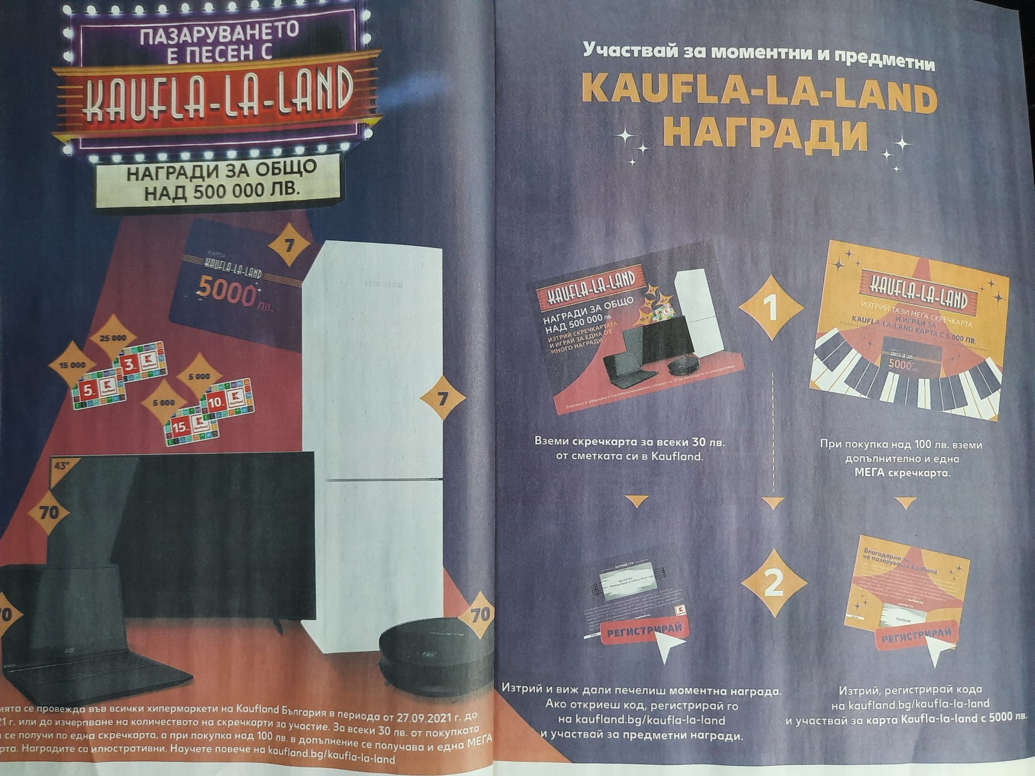 Много хубави награди пак в Кауфланд. За толкова години игри с награди от тях: малки-ваучери и големи-предметни награди, досега не съм чела, чула, някой да е спечелил повече от 2 лв ваучер, ако изобщо печели. Търкахме карти, регистрирахме и нищо.