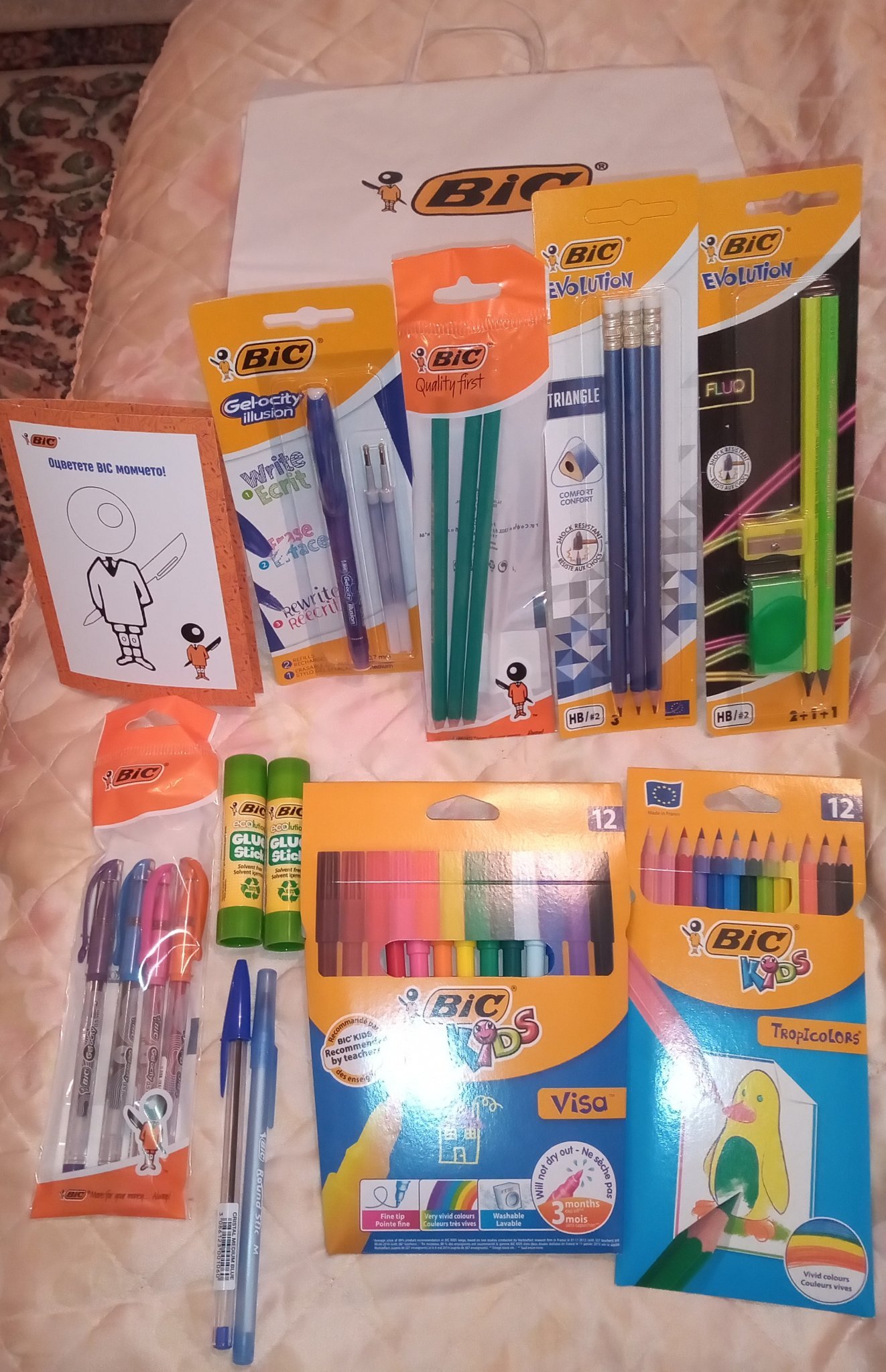 Онзи ден си получих комплекта от BIC. Много бързо дойде и съм изключително доволна. Всичко ще влезе в употреба за учениците вкъщи