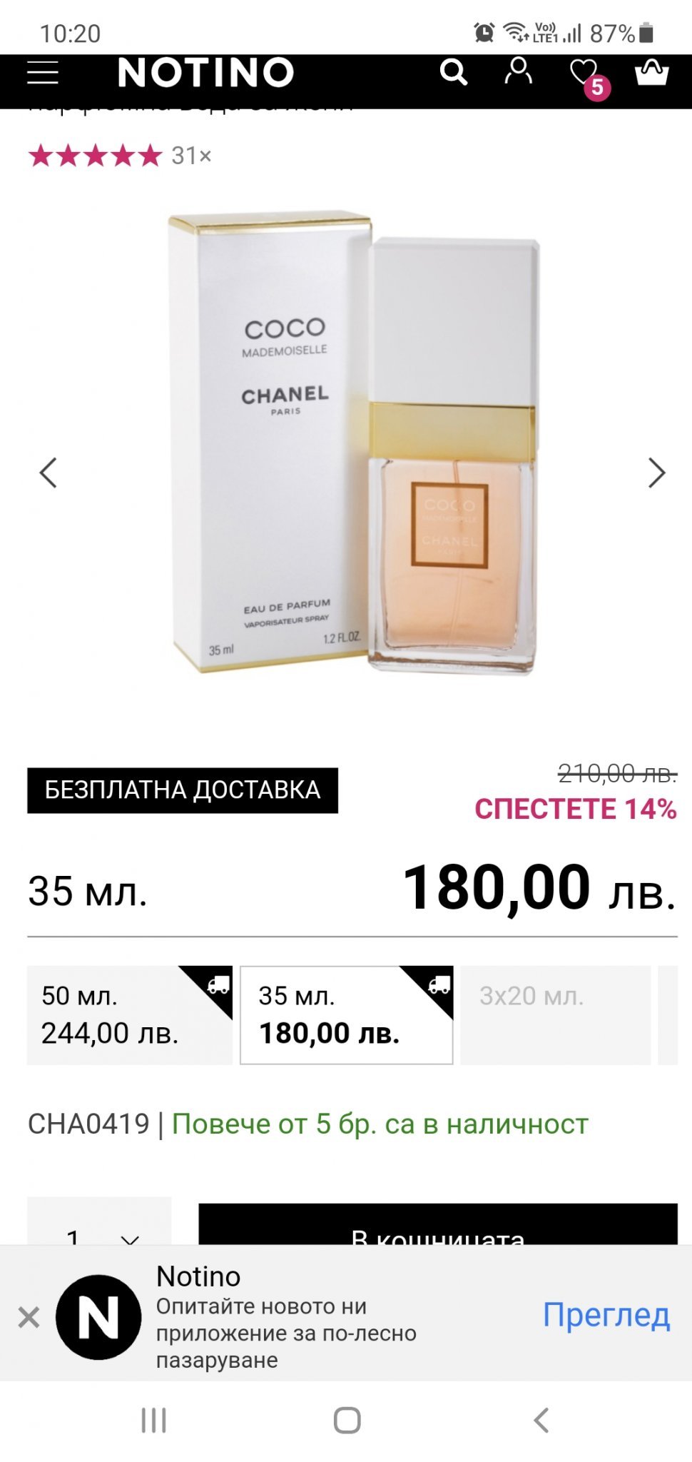 Нотино, днес. Ще трябва да отида до Прити шоп, там 30 мл е 139 лева. Това се оказа абсолютно неподходящо за мен, но пък универсален подарък.......