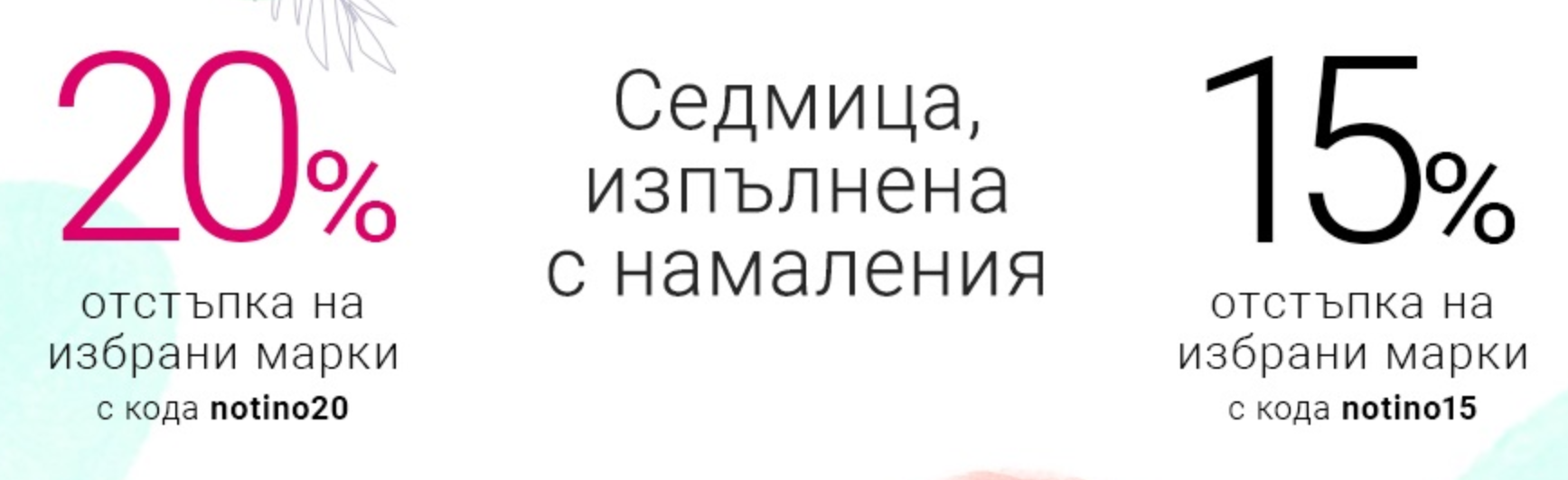 В Нотино имат намаления на марки - 15 и 20 процента отстъпка. Тук е списъка - https://---shoretner923-3hrlEfa Кодовете са notino20 и notino15.