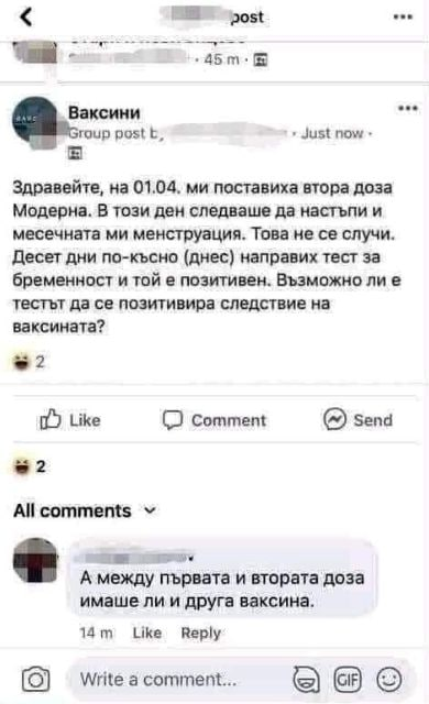 Мен ме ваксинира мъж втория път, ама явно ваксината му е била некачествена, защото още не съм бременна. Joy