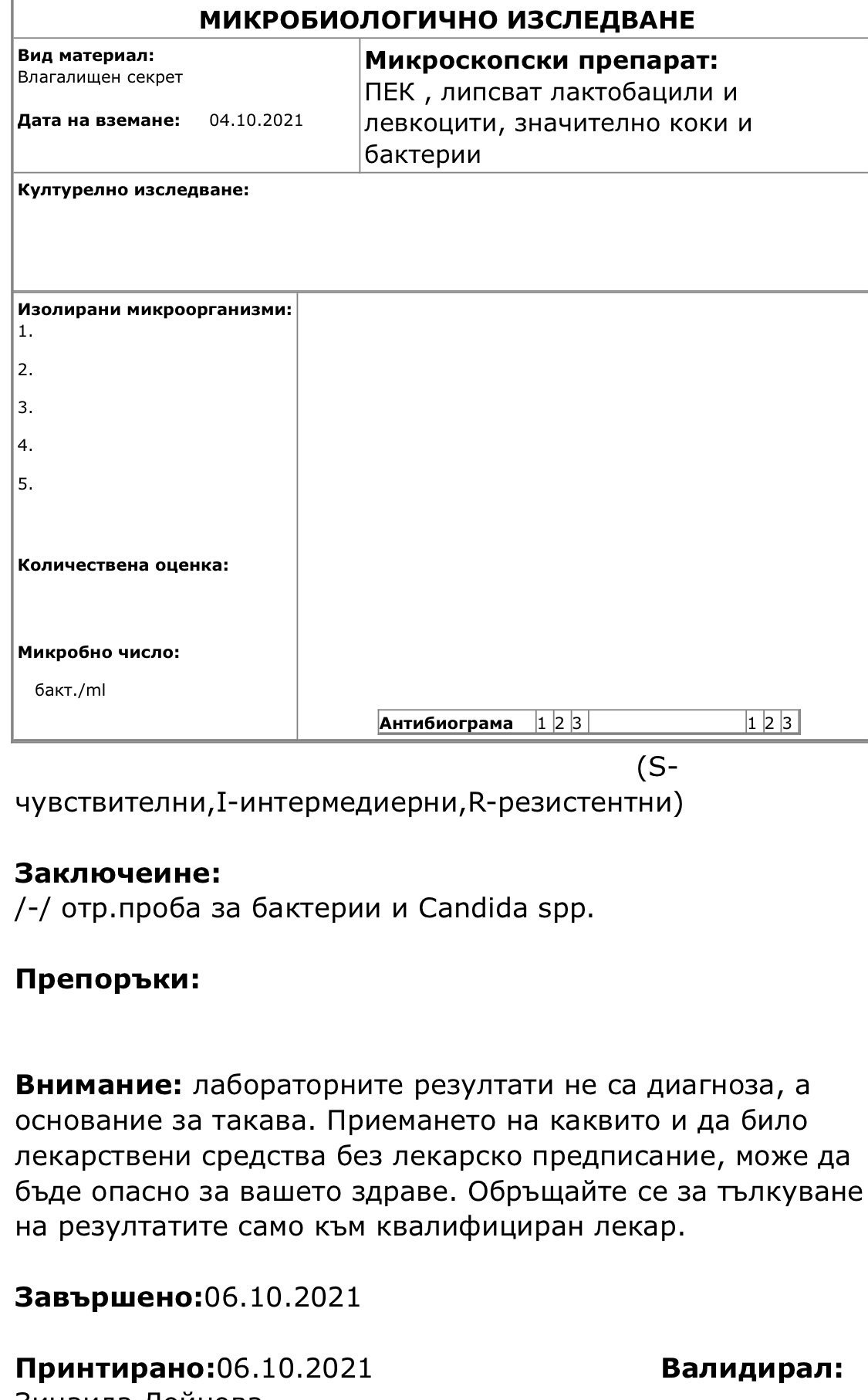 Здравейте, момичета. Излезе ми резултата от микробиологията. Може ли малко помощ? Чакам и АГ да каже.