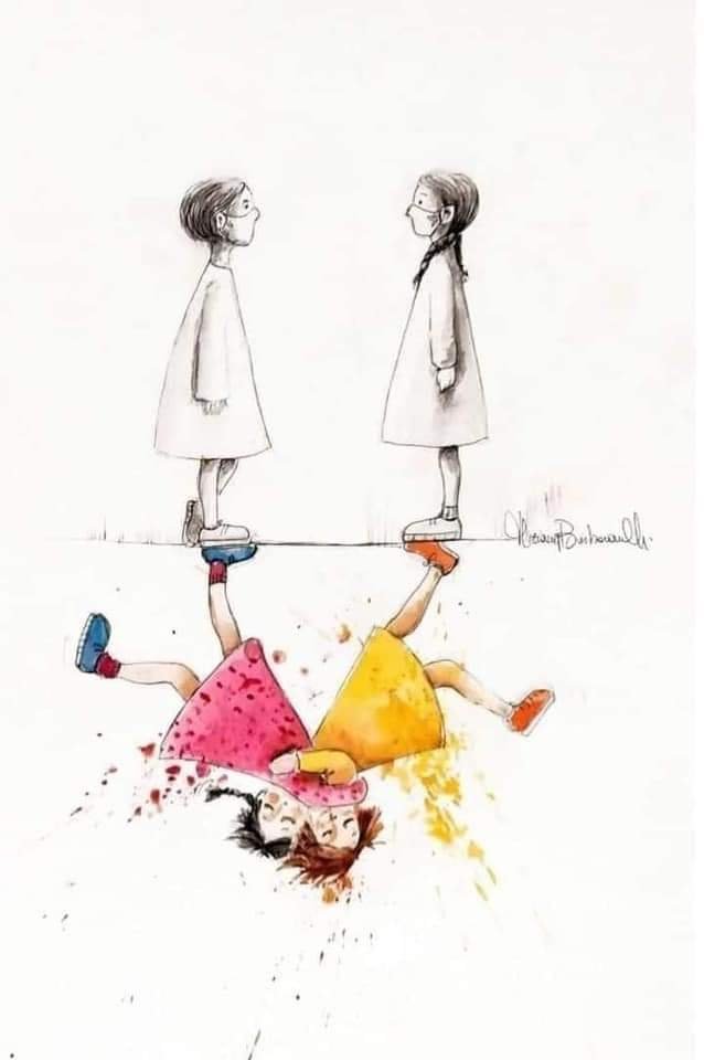 Ето нещо по повод децата, което е много ключово. От година и половина променихме дефинициите за вина и хвърлихме почти цялата отговорност за заразяването на тях, децата. Без да ни е грижа какви щети причиняваме, от първичен страх.