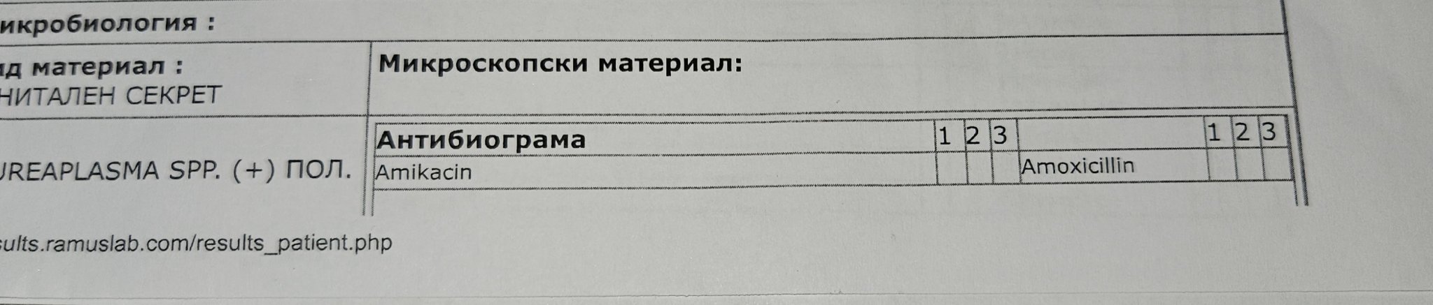 Допълвам поста си ,няма антибиограма поради ниско съдържание на уреаплазма. Кво ще рече това сега?